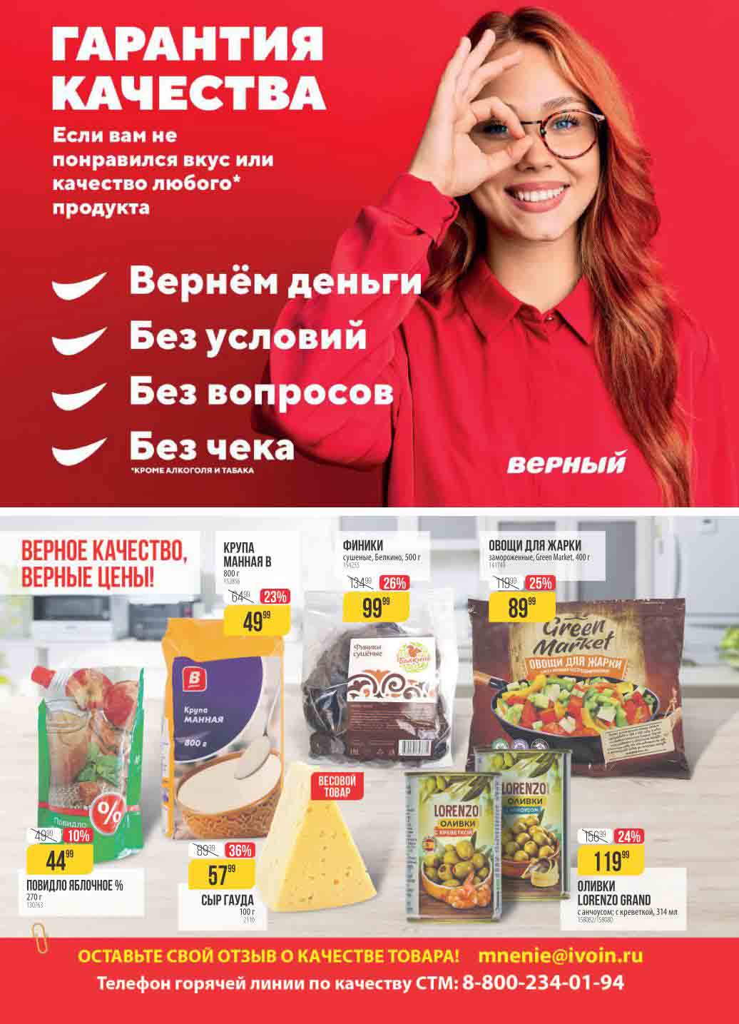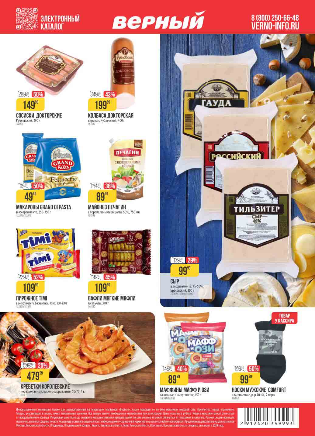 В акционном буклете предложены выгодные цены на различные продукты питания, такие как яблоки, сыр, курицу, креветки, крабовые палочки, лосось, говядина, рыба и многие другие.