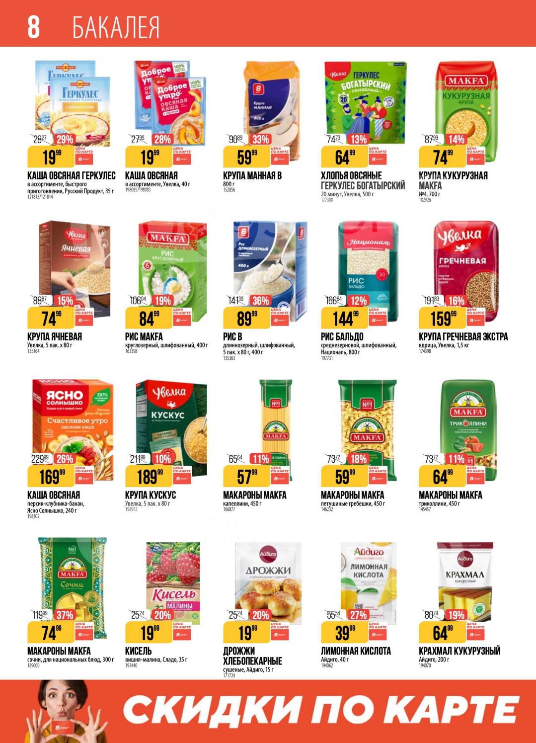 На страницах каталога Верный вы найдете все свои любимые товары, которые сейчас предлагаются в супермаркете. Еженедельное снижение цен на определенные виды, как продовольственных, так и хозтоваров. Цены по акции Верный действуют в городах: Москва, Балашиха, Химки, Подольск, Королев, Мытищи, Люберцы, Электросталь, Коломна, Одинцово, Железнодорожный, Серпухов, Орехово-Зуево, Красногорск, Щелково, Сергиев Посад, Пушкино, Жуковский, Ногинск, Раменское, Клин, Воскресенск, Домодедово и многих других населенных пунктах Московского региона.