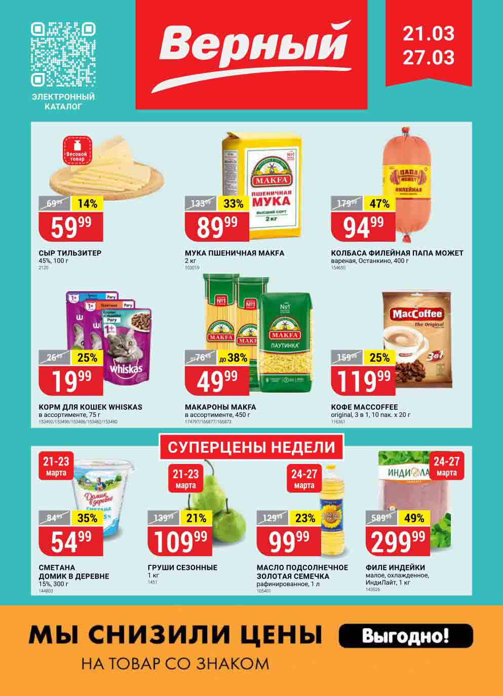 Верный акции с 21 марта — 27 марта 2023. Каталог в супермаркете сегодня