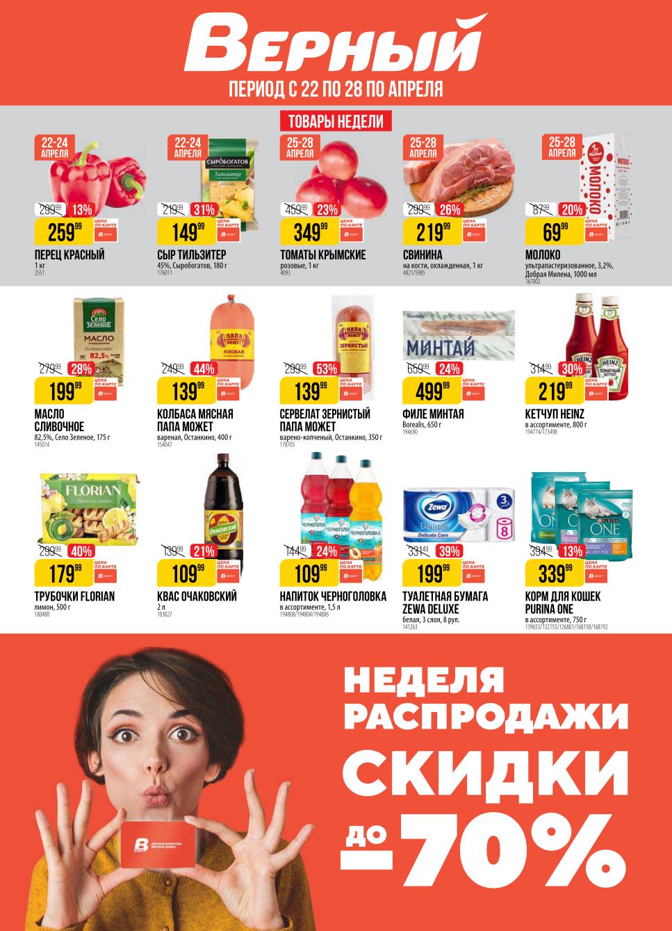 Верный акции с 22 апреля — 28 апреля 2025. Каталог в супермаркете сегодня