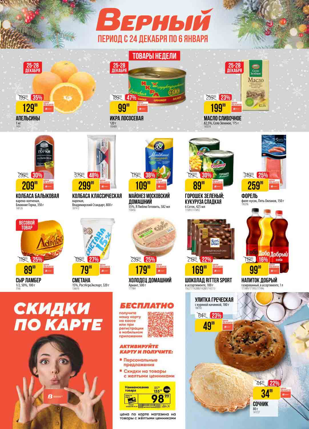 Верный акции с 24 декабря — 6 января 2025. Каталог в супермаркете сегодня