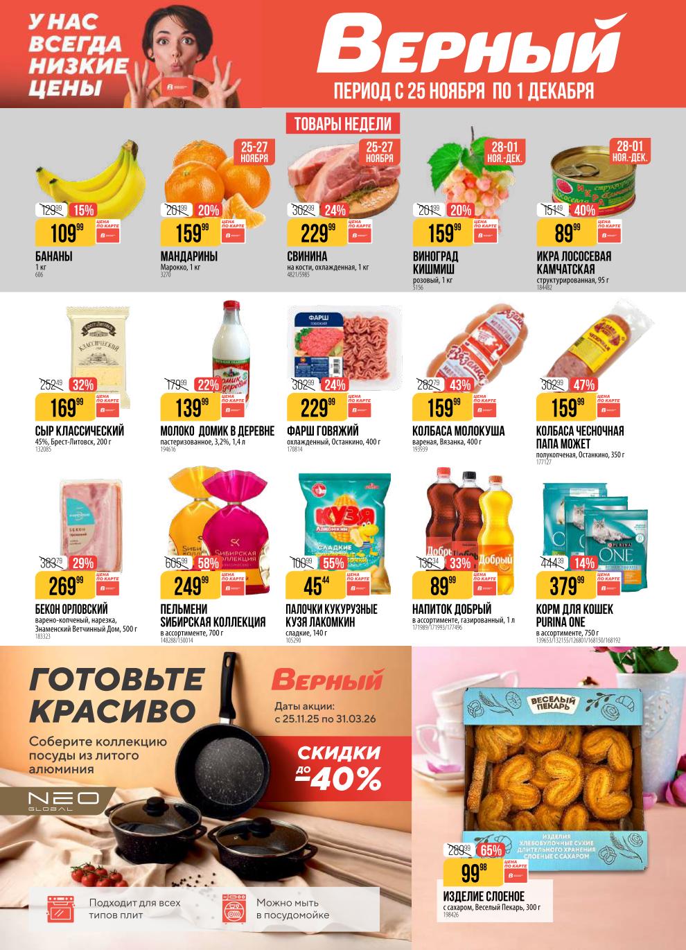 Верный акции с 25 ноября — 1 декабря 2025. Каталог в супермаркете сегодня