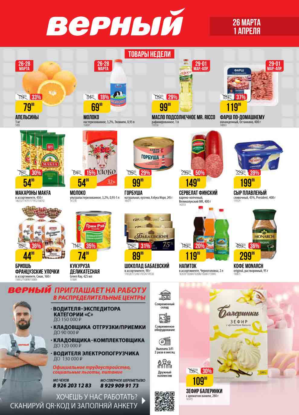 Верный акции с 26 марта — 1 апреля 2024. Каталог в супермаркете сегодня