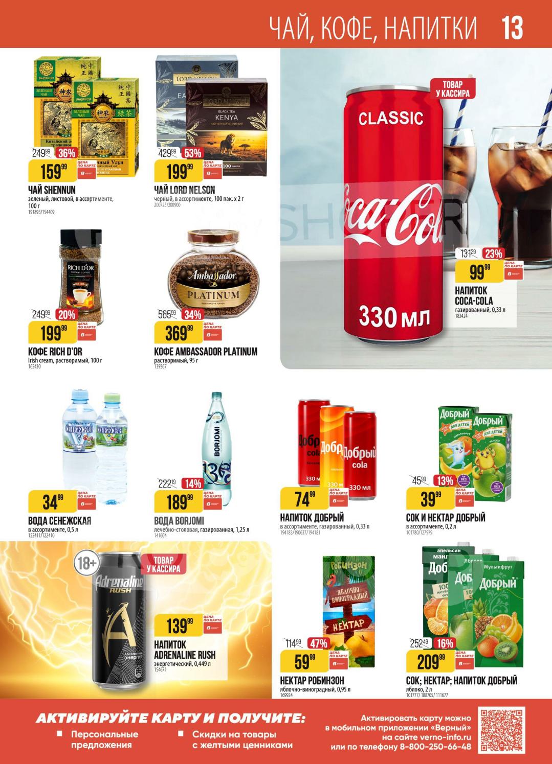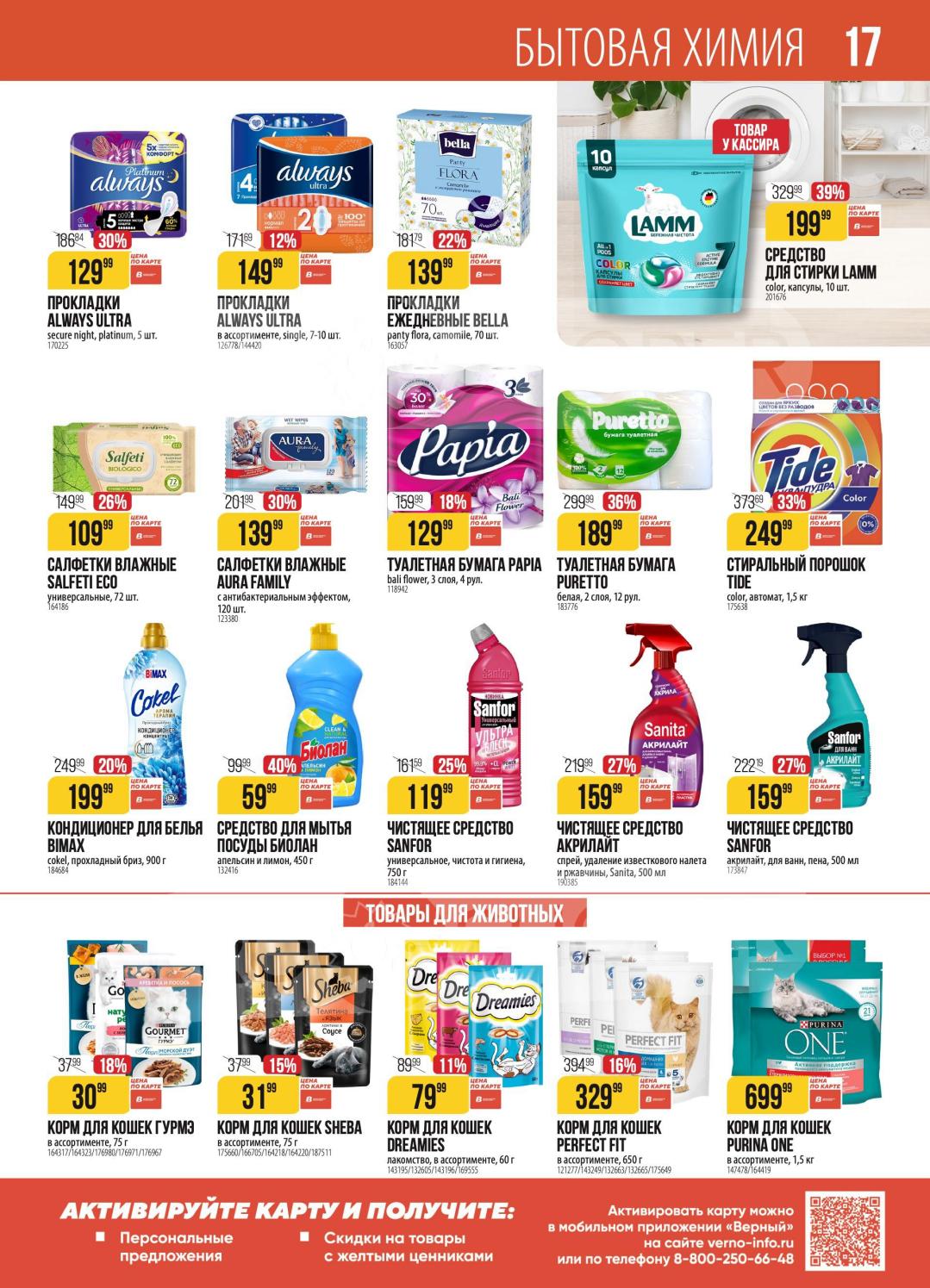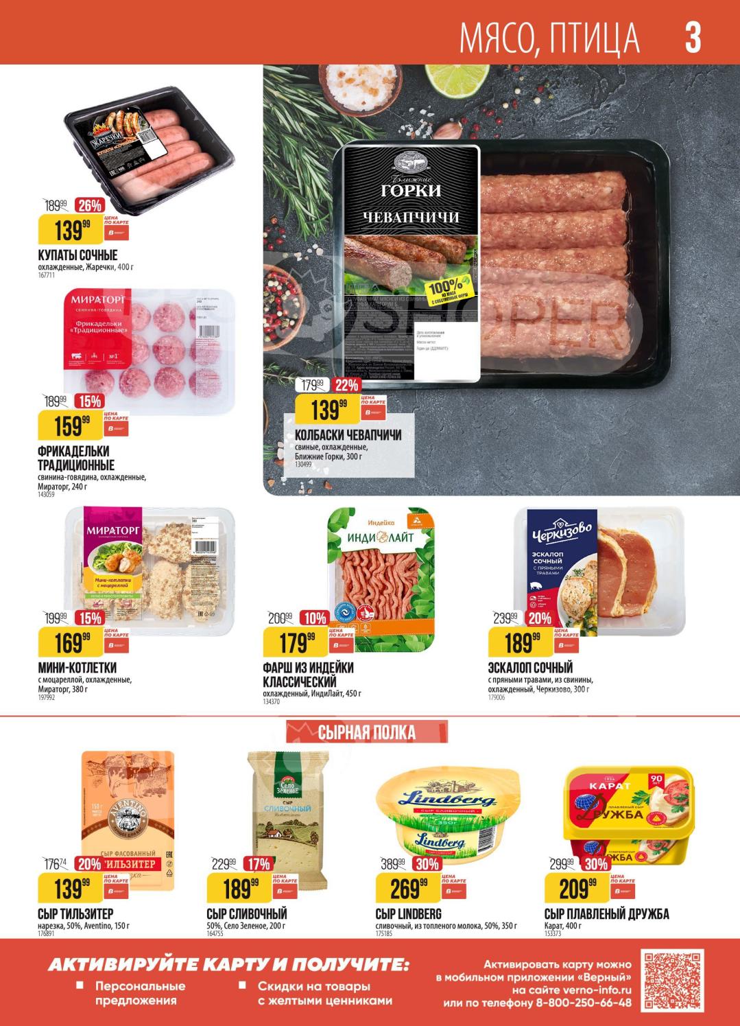 На страницах каталога Верный вы найдете все свои любимые товары, которые сейчас предлагаются в супермаркете. Еженедельное снижение цен на определенные виды, как продовольственных, так и хозтоваров. Цены по акции Верный действуют в городах: Москва, Балашиха, Химки, Подольск, Королев, Мытищи, Люберцы, Электросталь, Коломна, Одинцово, Железнодорожный, Серпухов, Орехово-Зуево, Красногорск, Щелково, Сергиев Посад, Пушкино, Жуковский, Ногинск, Раменское, Клин, Воскресенск, Домодедово и многих других населенных пунктах Московского региона.