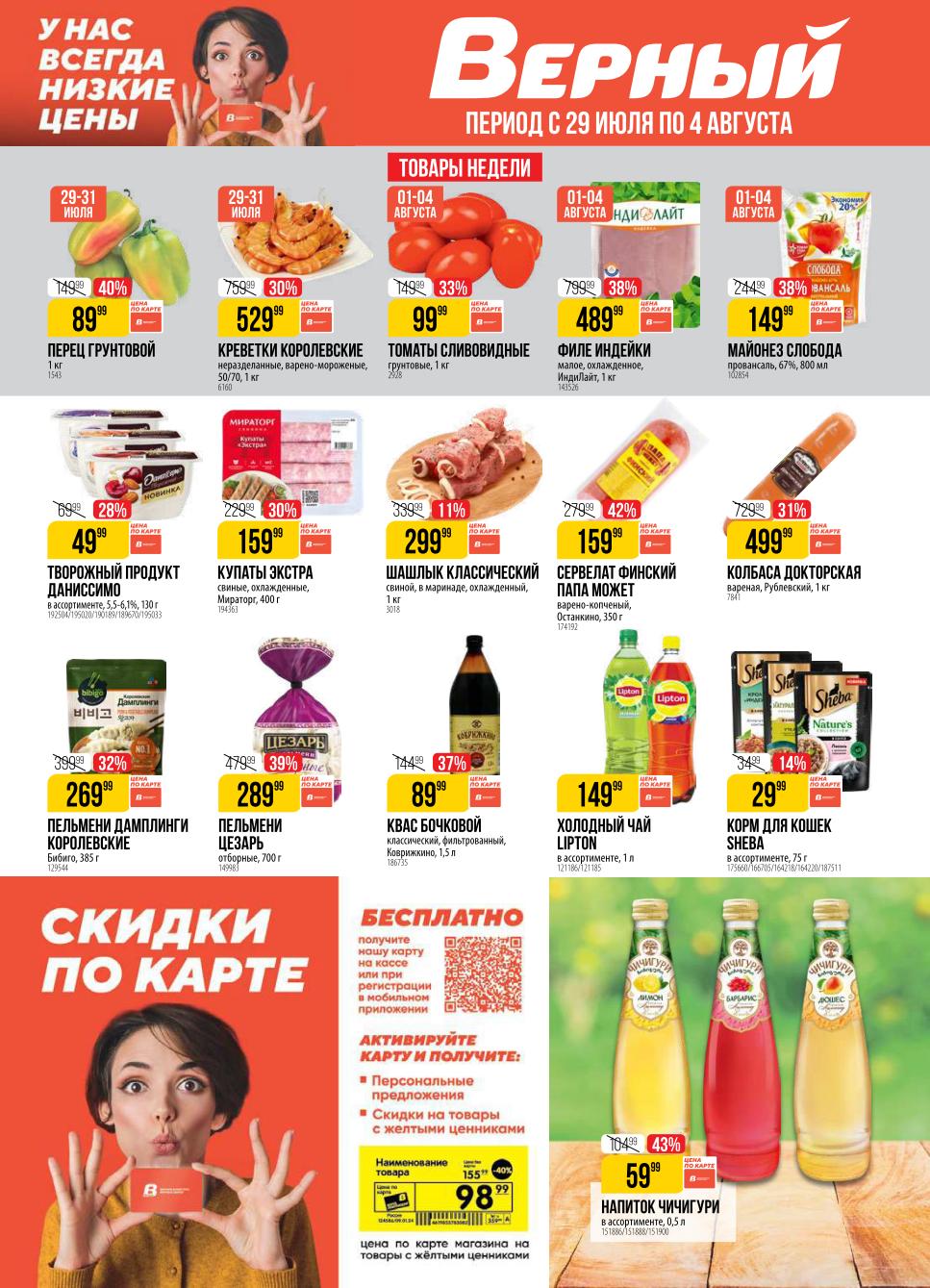 Верный акции с 29 июля — 4 августа 2025. Каталог в супермаркете сегодня