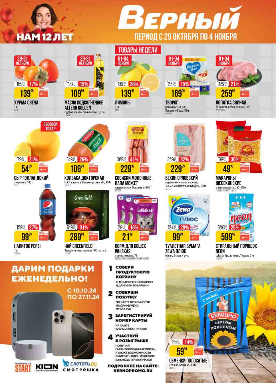 Верный акции с 29 октября — 4 ноября 2024. Каталог в супермаркете сегодня
