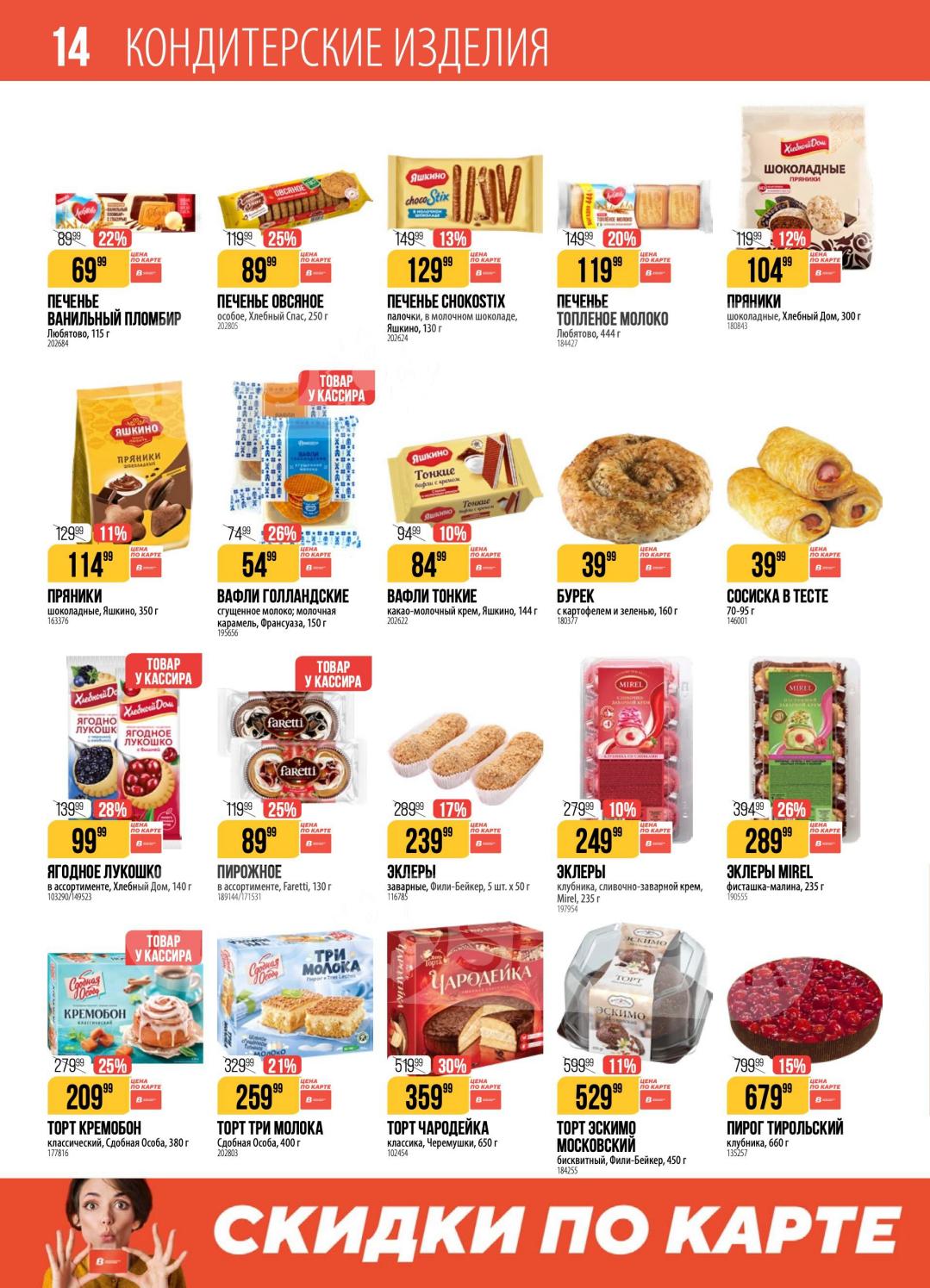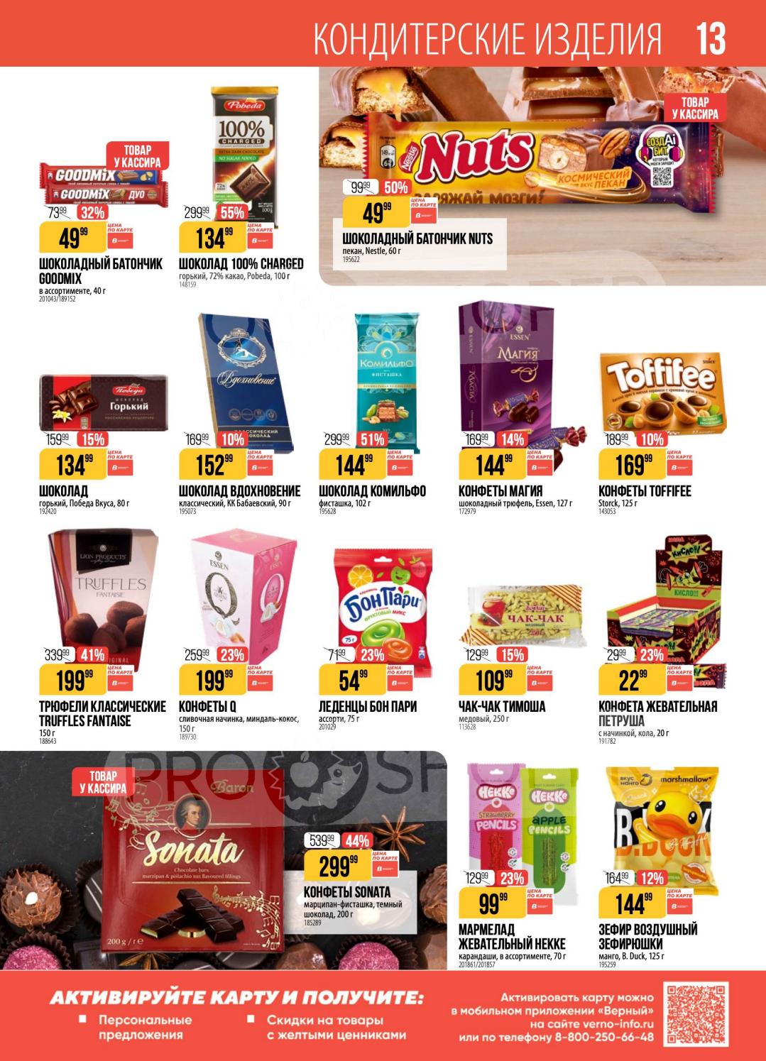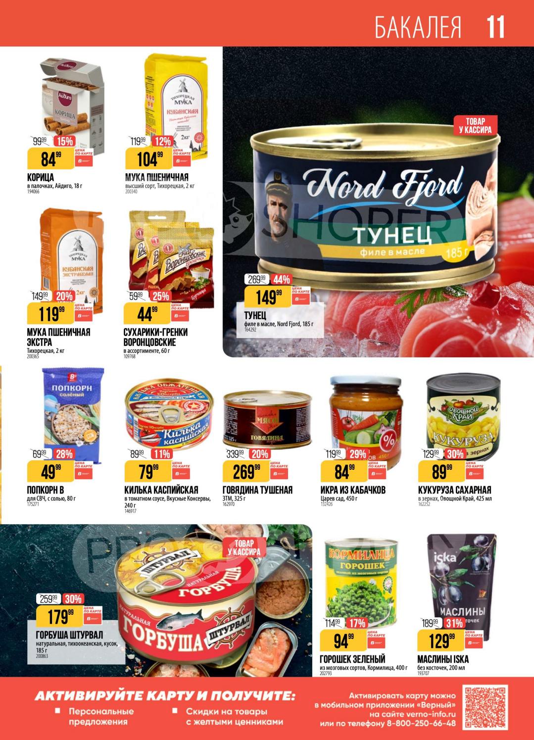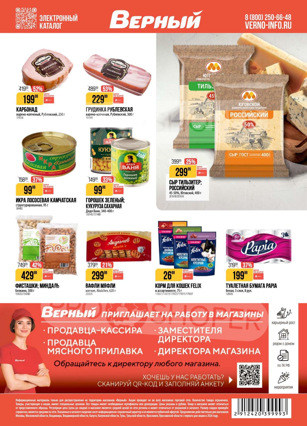 На страницах каталога Верный вы найдете все свои любимые товары, которые сейчас предлагаются в супермаркете. Еженедельное снижение цен на определенные виды, как продовольственных, так и хозтоваров. Цены по акции Верный действуют в городах: Москва, Балашиха, Химки, Подольск, Королев, Мытищи, Люберцы, Электросталь, Коломна, Одинцово, Железнодорожный, Серпухов, Орехово-Зуево, Красногорск, Щелково, Сергиев Посад, Пушкино, Жуковский, Ногинск, Раменское, Клин, Воскресенск, Домодедово и многих других населенных пунктах Московского региона.