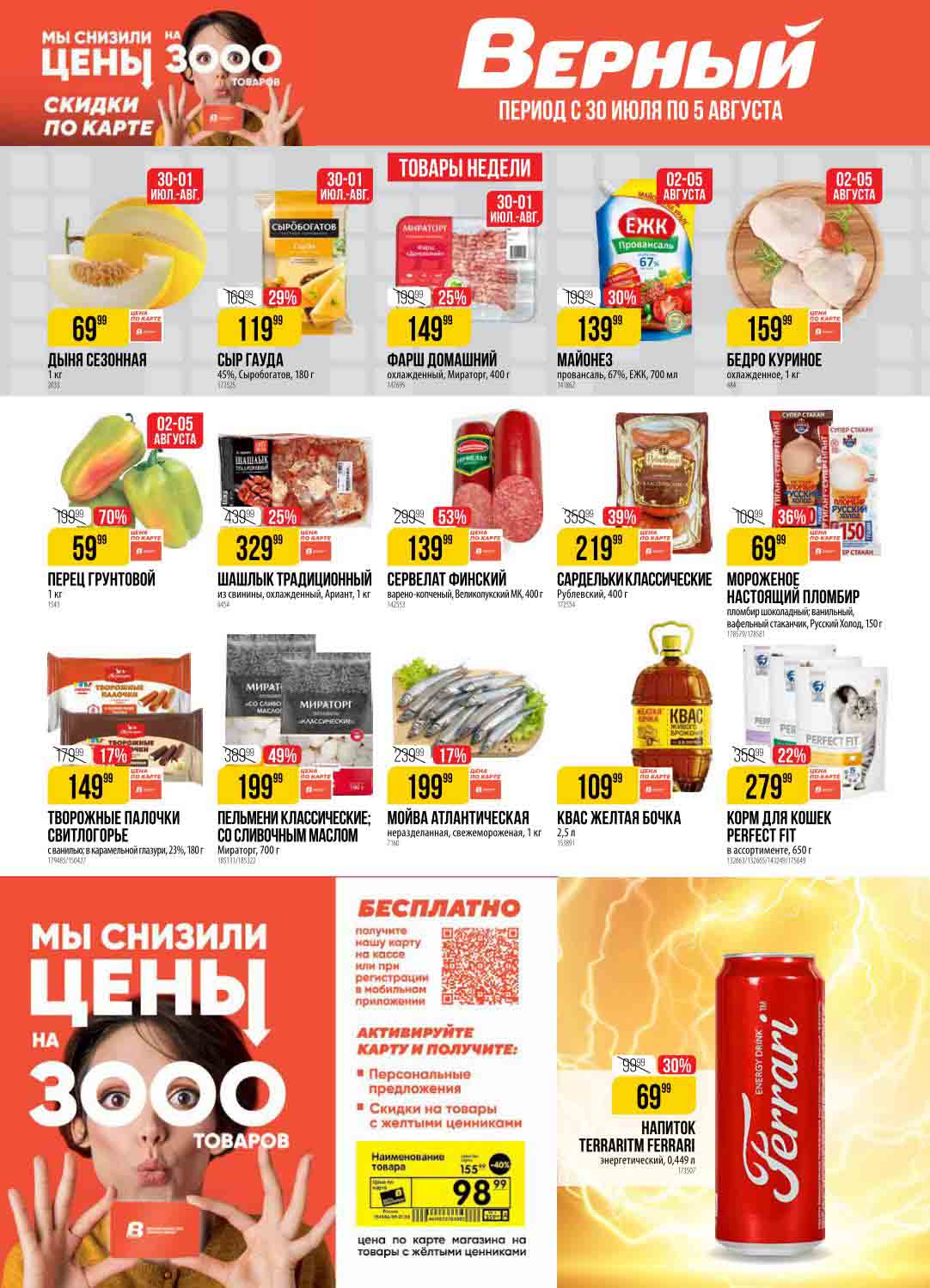 Верный акции с 30 июля — 5 августа 2024. Каталог в супермаркете сегодня