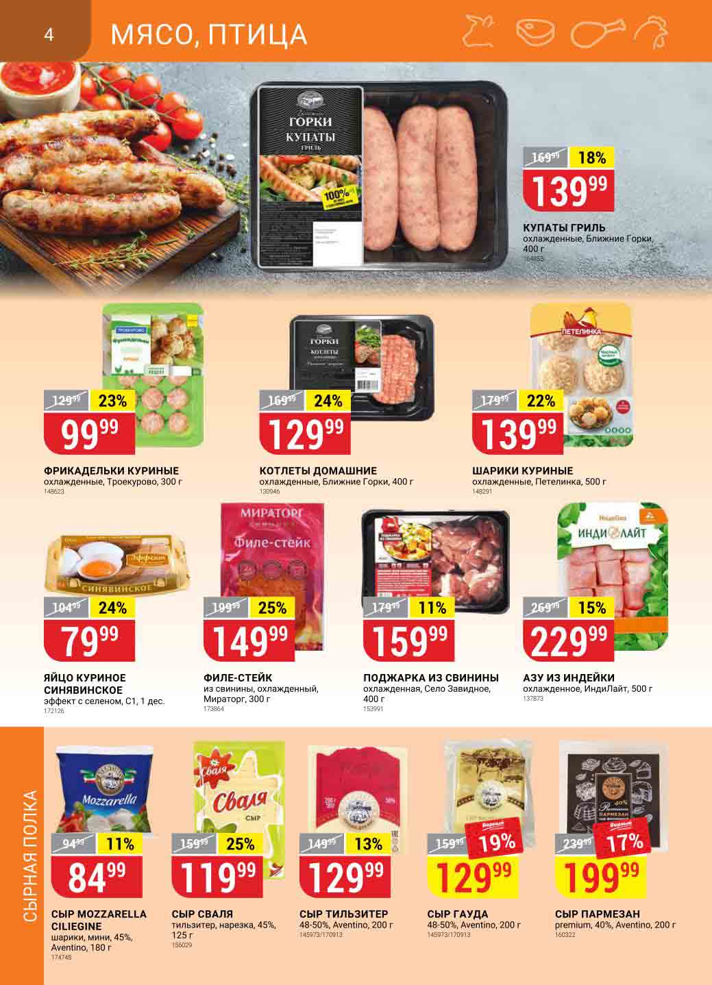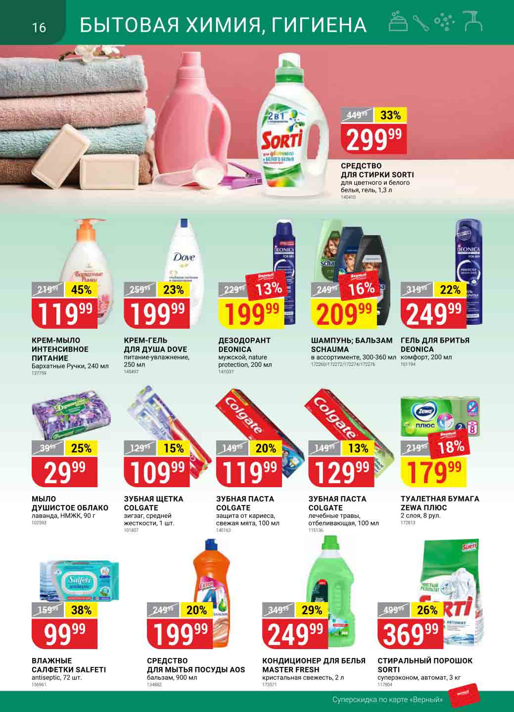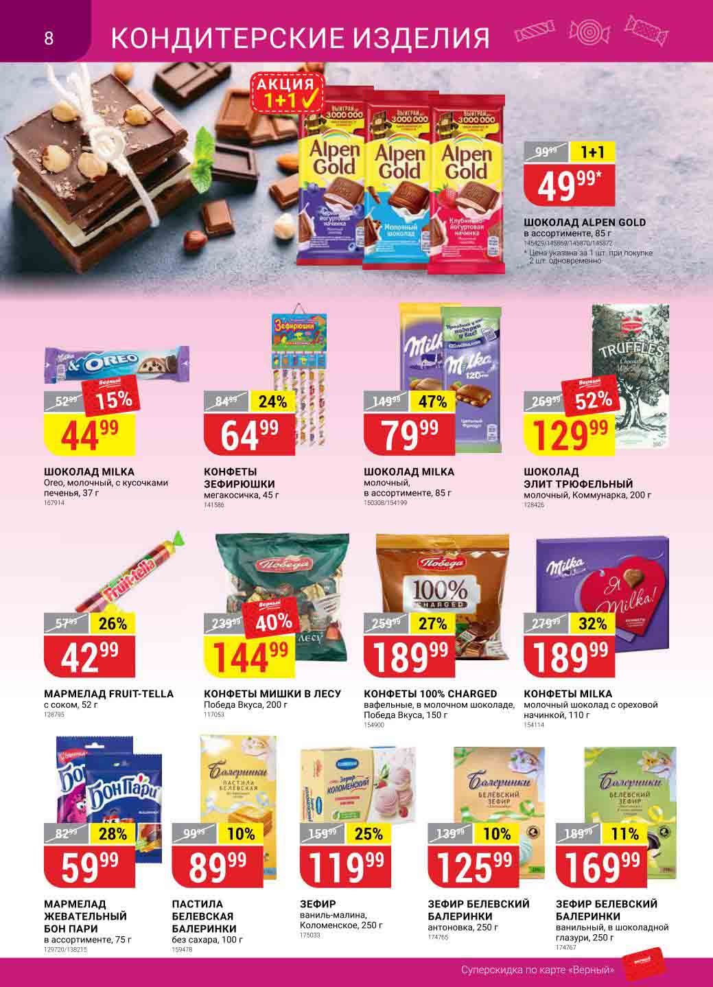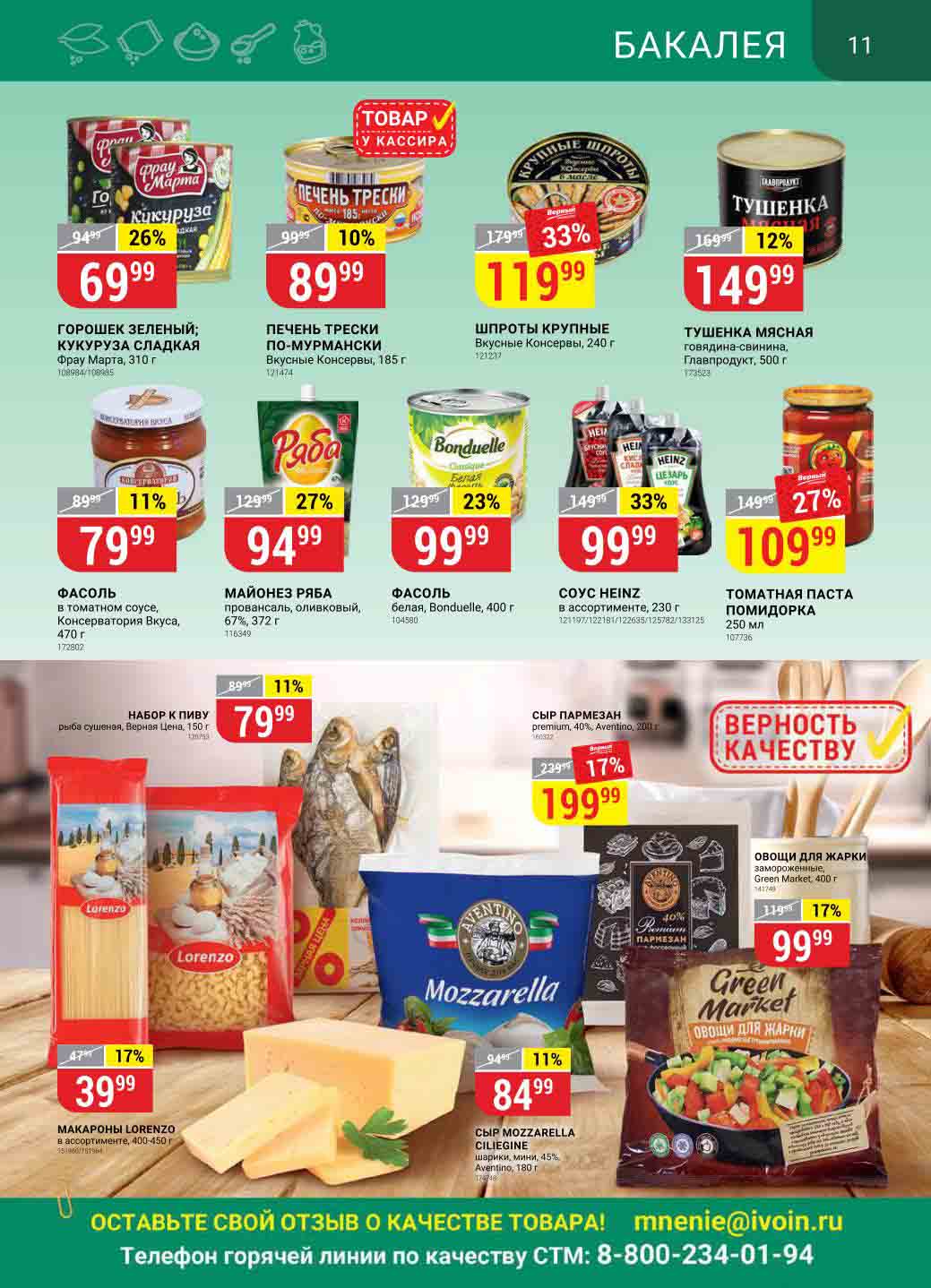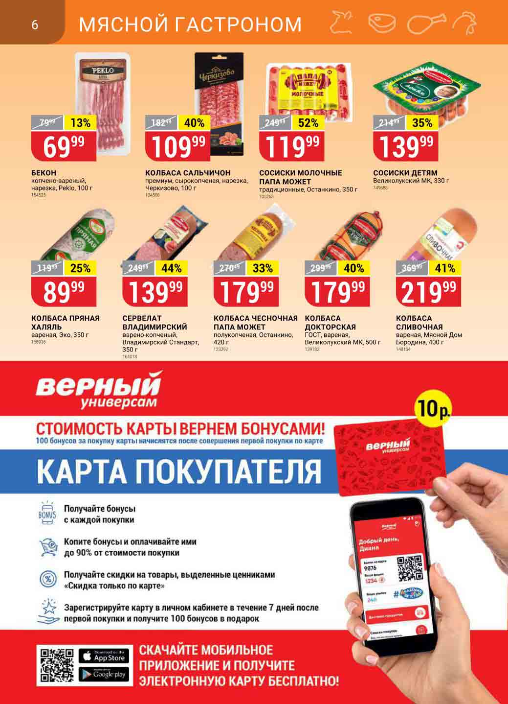 На страницах каталога Верный вы найдете все свои любимые товары, которые сейчас предлагаются в супермаркете. Еженедельное снижение цен на определенные виды, как продовольственных, так и хозтоваров. Цены по акции Верный действуют в городах: Москва, Балашиха, Химки, Подольск, Королев, Мытищи, Люберцы, Электросталь, Коломна, Одинцово, Железнодорожный, Серпухов, Орехово-Зуево, Красногорск, Щелково, Сергиев Посад, Пушкино, Жуковский, Ногинск, Раменское, Клин, Воскресенск, Домодедово и многих других населенных пунктах Московского региона.