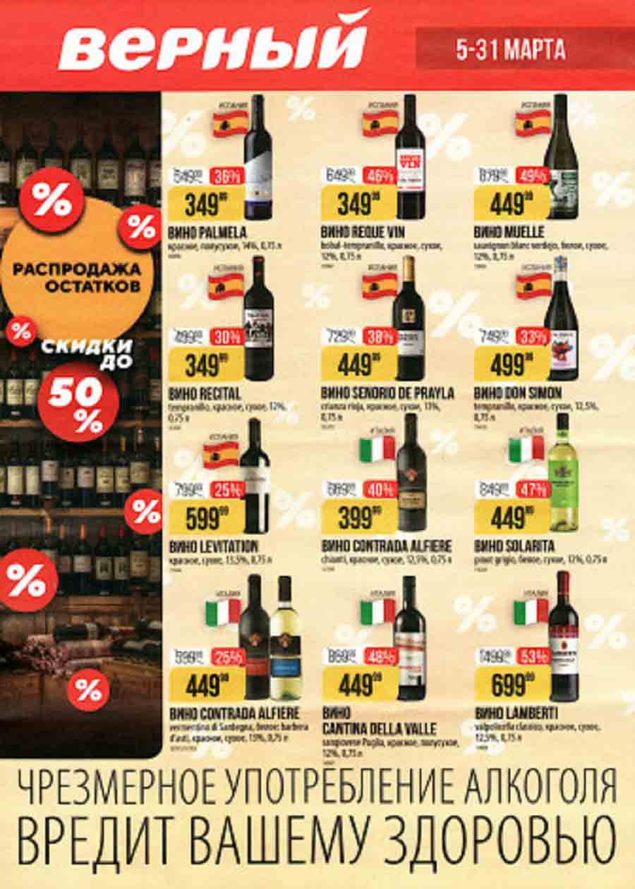 Верный акции с 5 марта — 31 марта 2024. Каталог алкогольных напитков