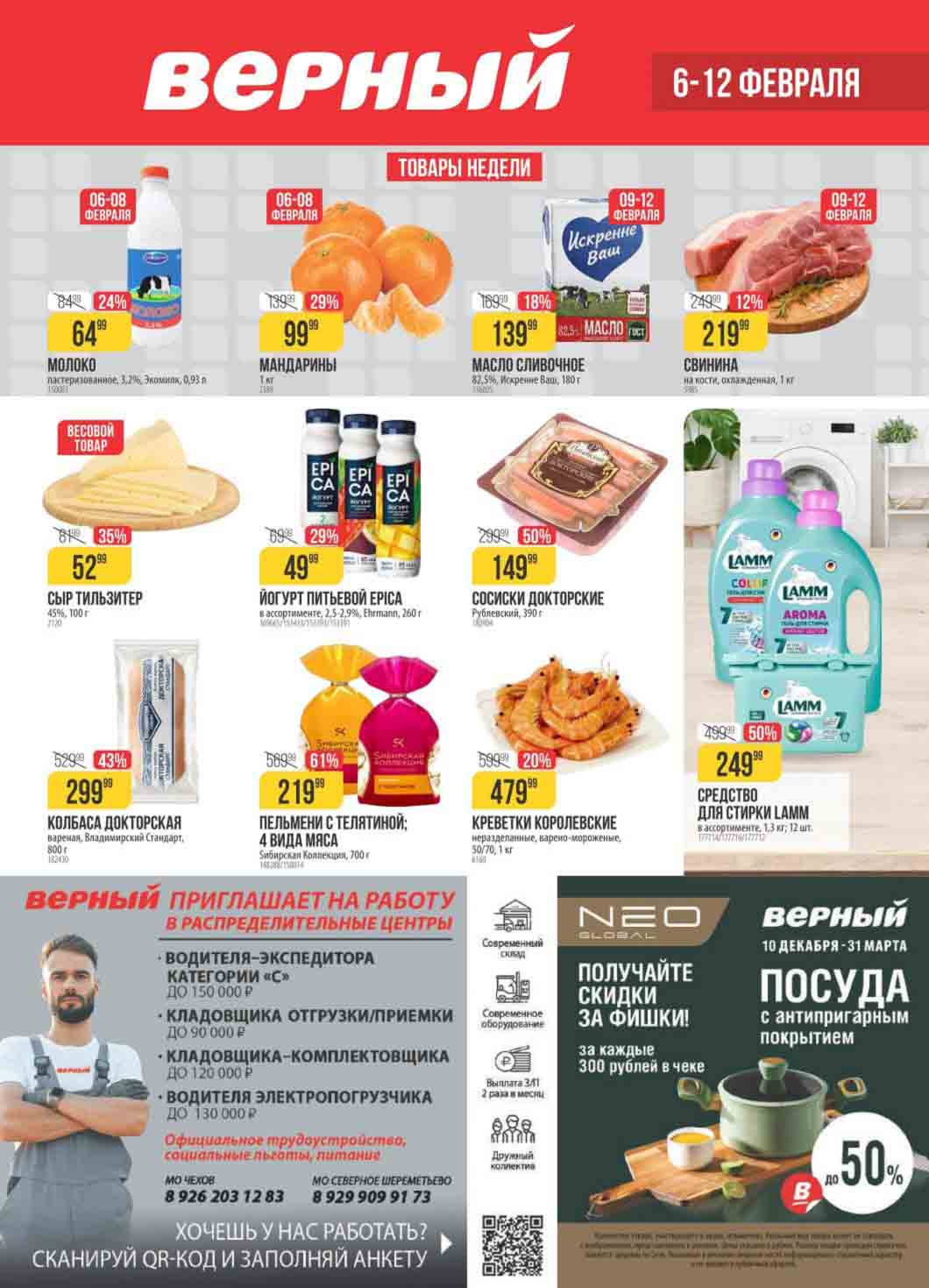 Верный акции с 6 февраля — 12 февраля 2024. Каталог в супермаркете сегодня