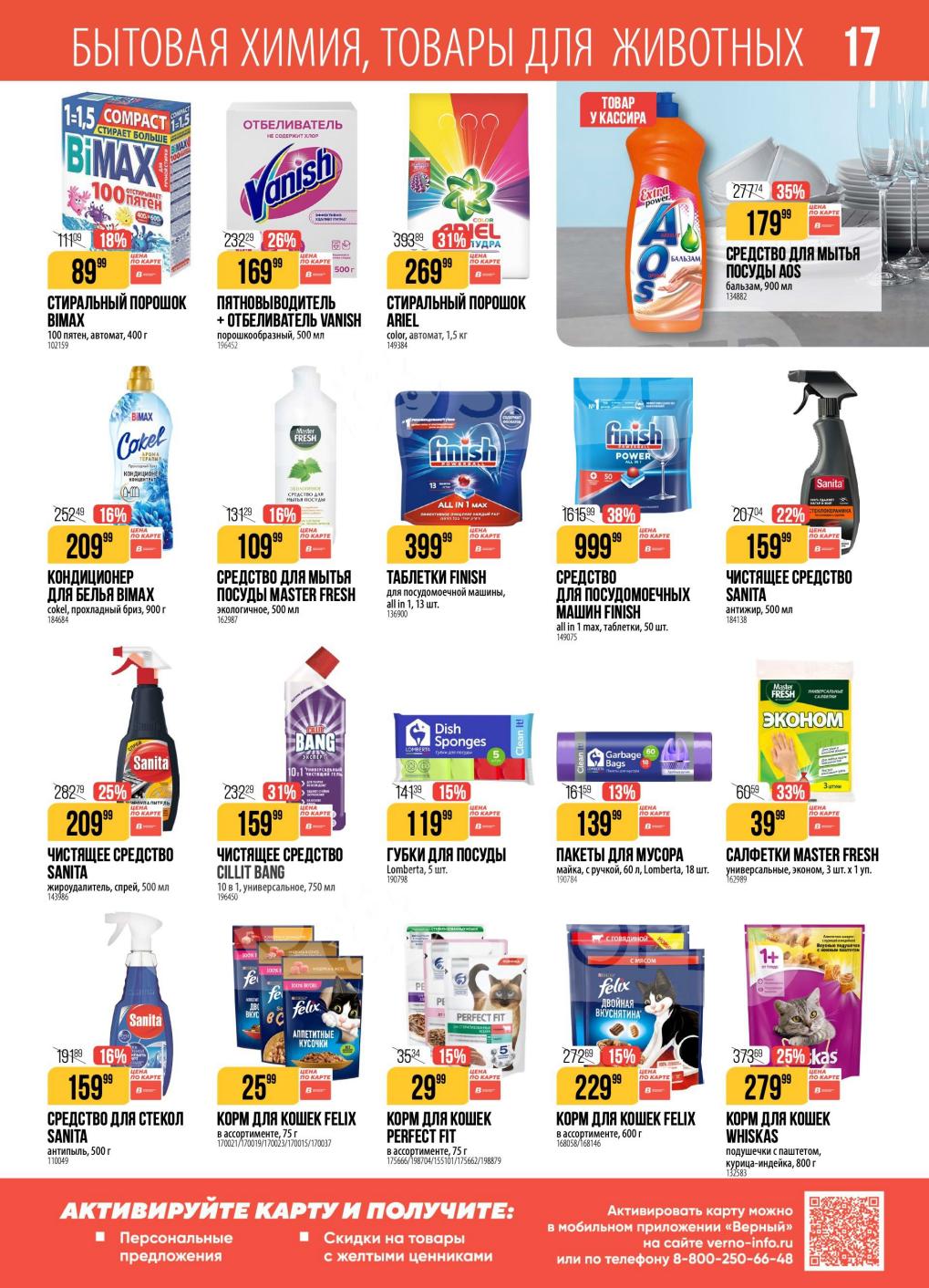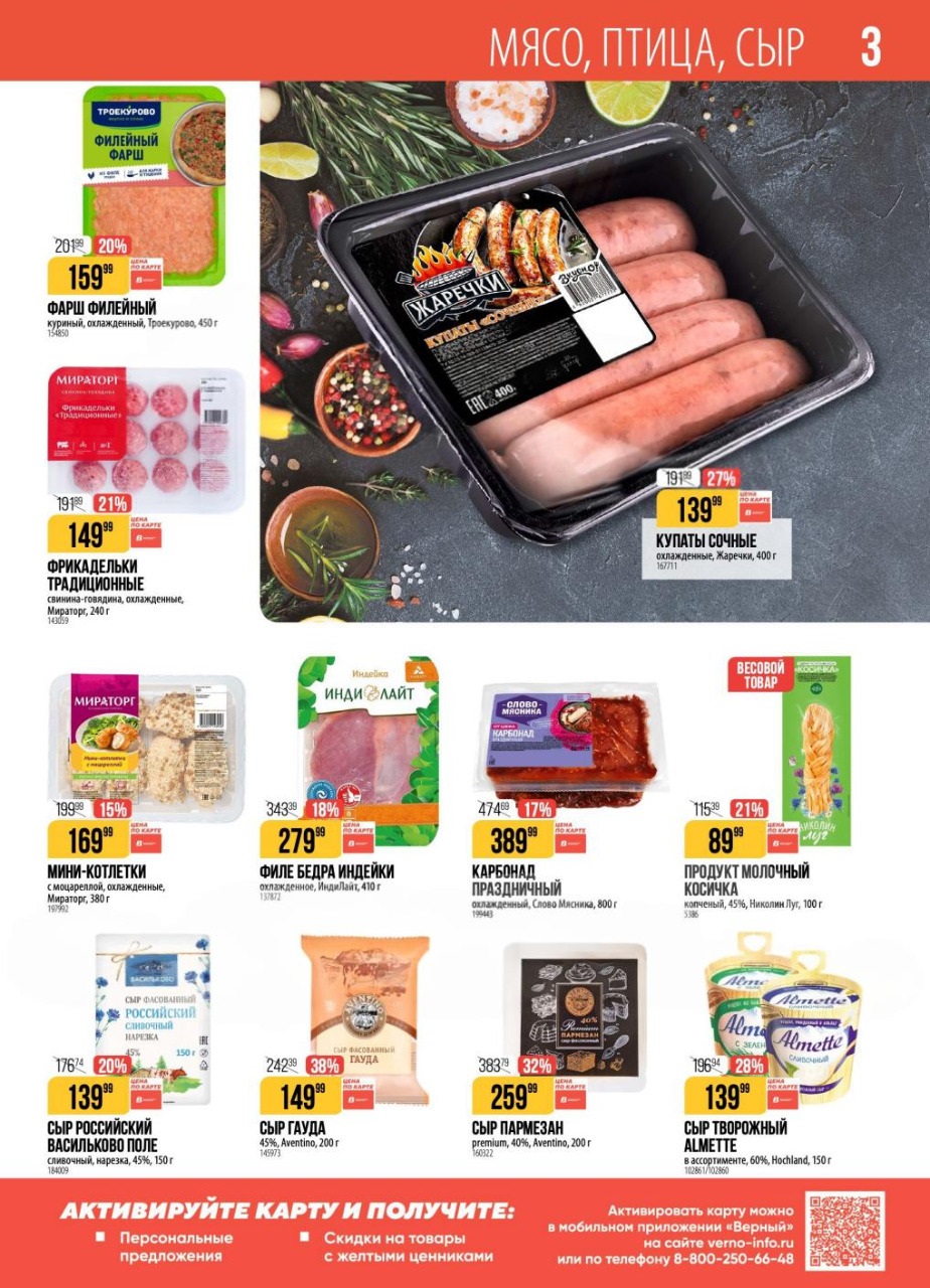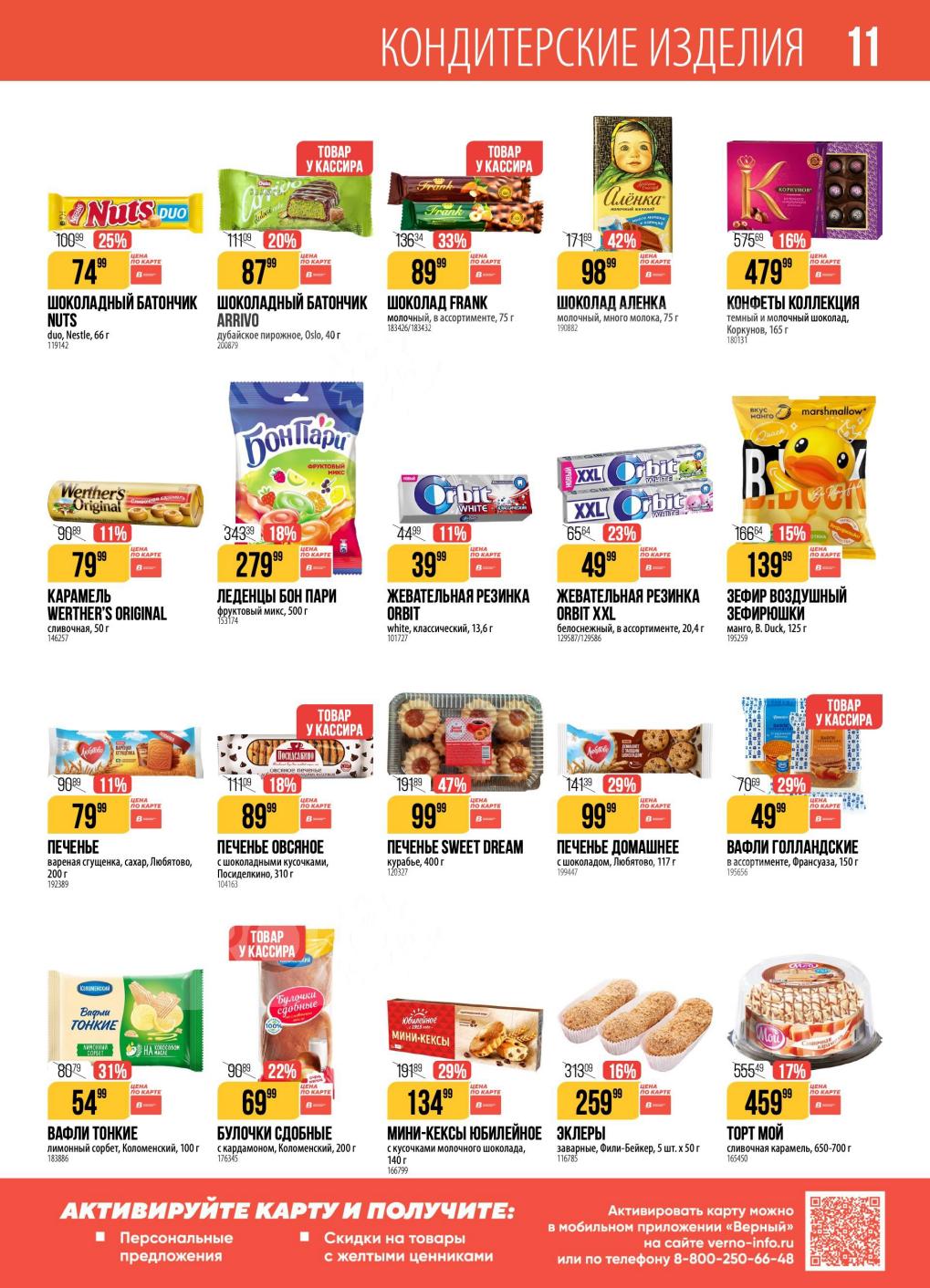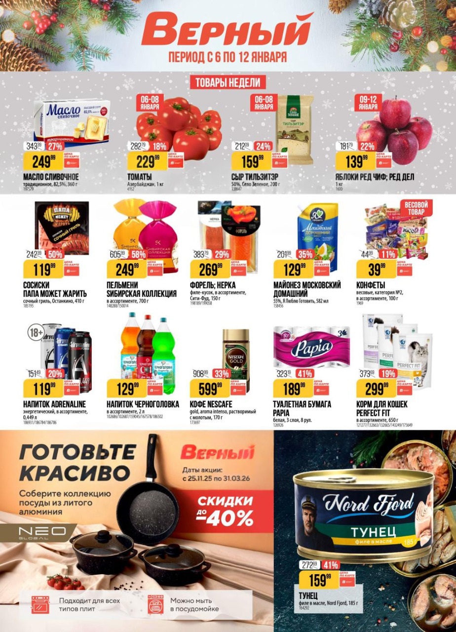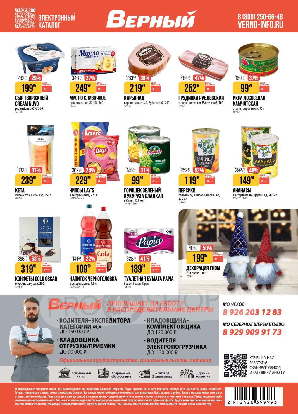 На страницах каталога Верный вы найдете все свои любимые товары, которые сейчас предлагаются в супермаркете. Еженедельное снижение цен на определенные виды, как продовольственных, так и хозтоваров. Цены по акции Верный действуют в городах: Москва, Балашиха, Химки, Подольск, Королев, Мытищи, Люберцы, Электросталь, Коломна, Одинцово, Железнодорожный, Серпухов, Орехово-Зуево, Красногорск, Щелково, Сергиев Посад, Пушкино, Жуковский, Ногинск, Раменское, Клин, Воскресенск, Домодедово и многих других населенных пунктах Московского региона.