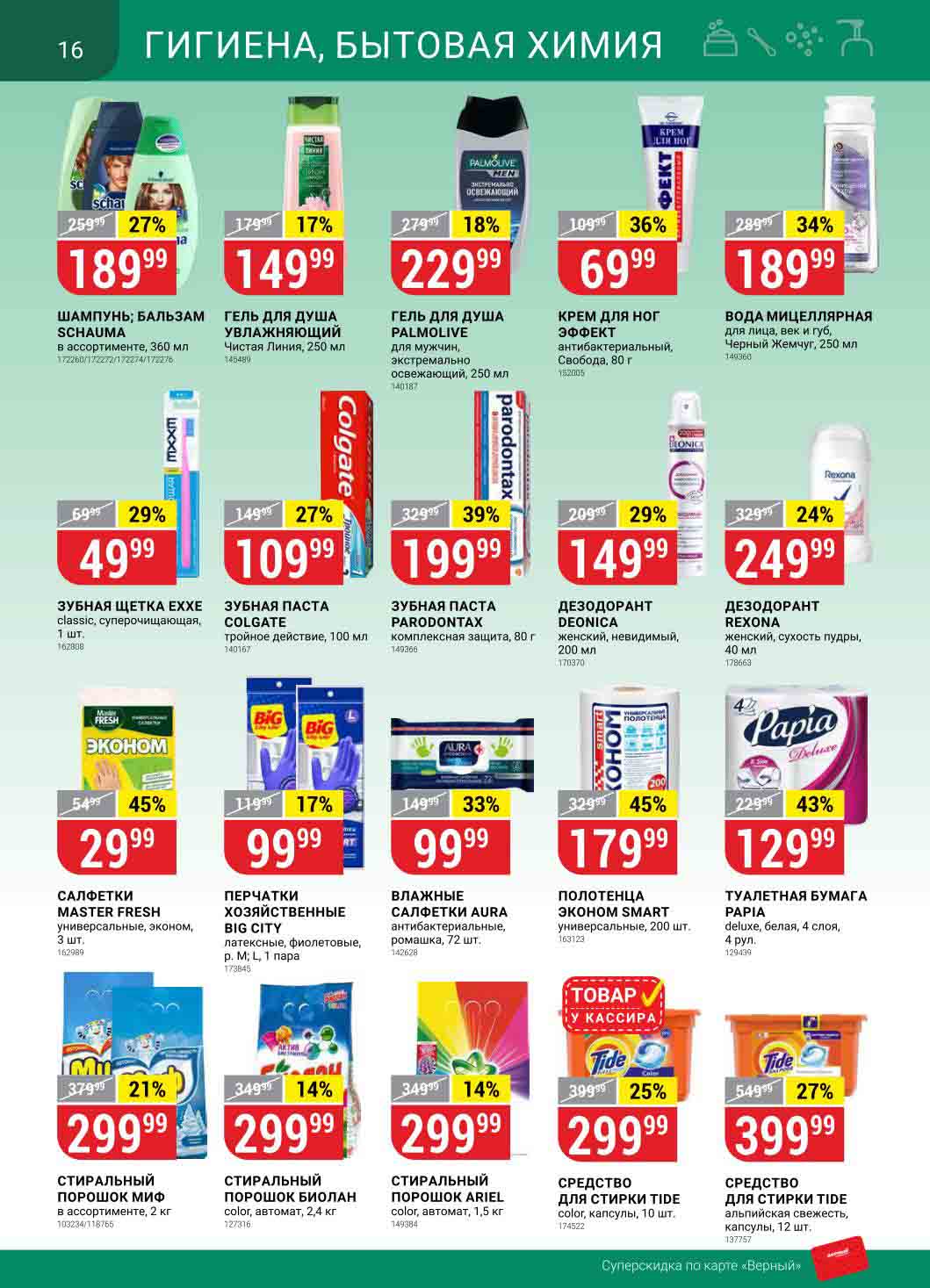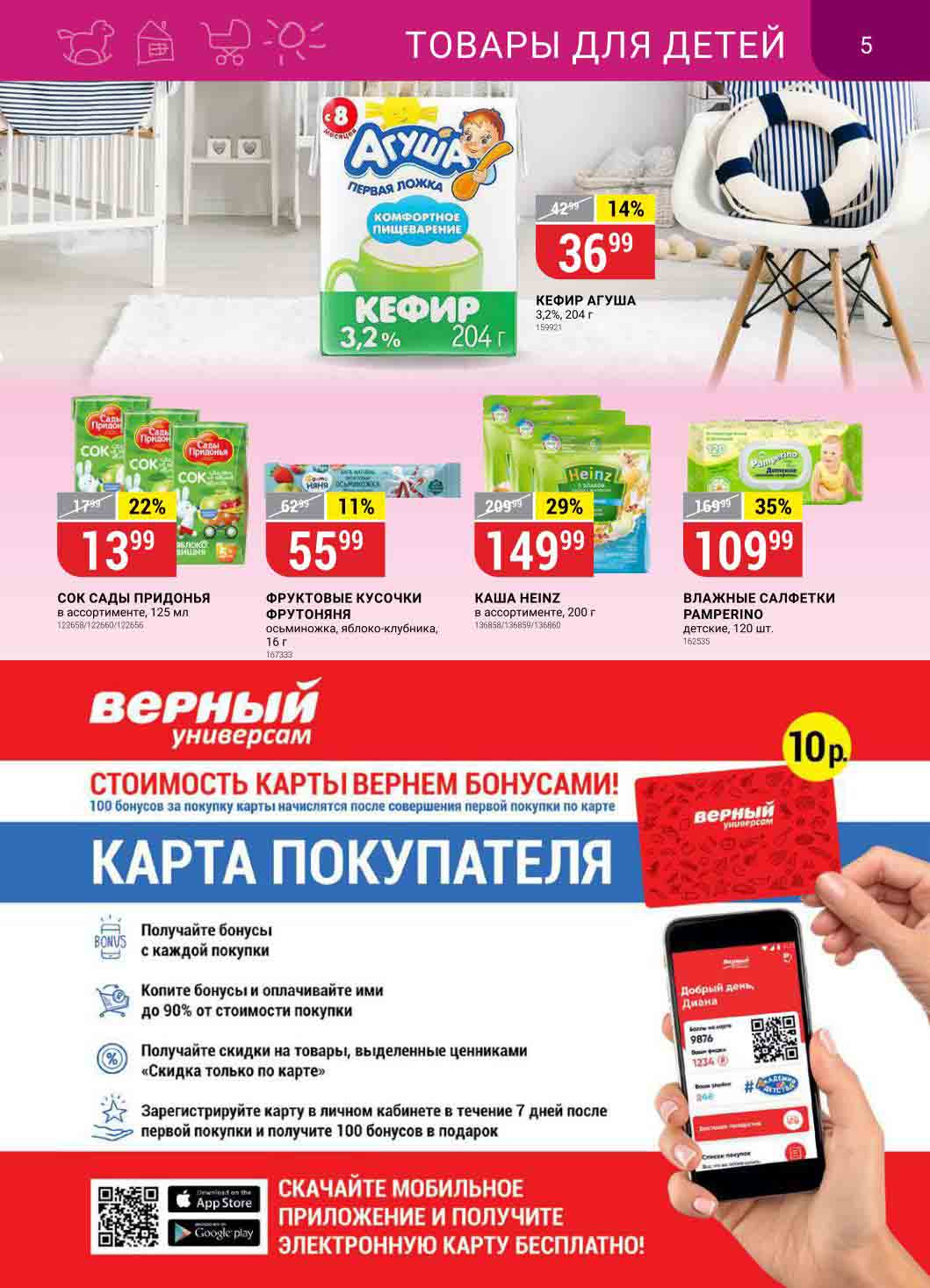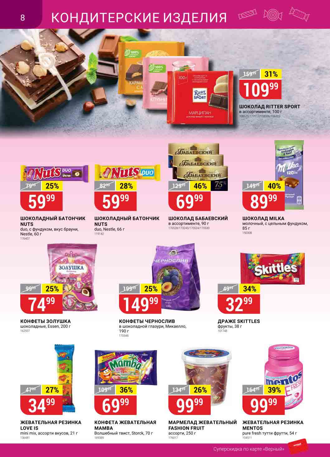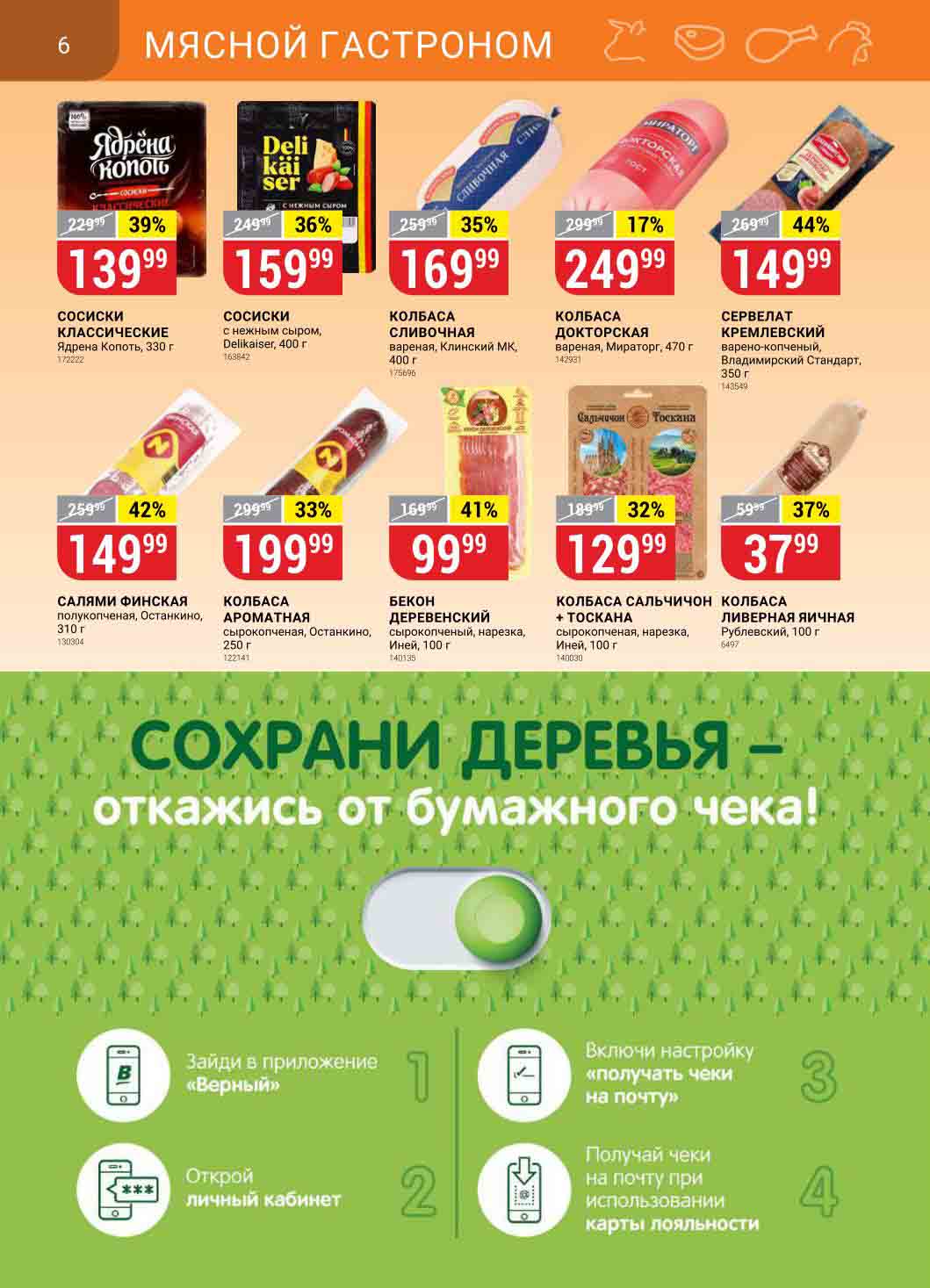 На страницах каталога Верный вы найдете все свои любимые товары, которые сейчас предлагаются в супермаркете. Еженедельное снижение цен на определенные виды, как продовольственных, так и хозтоваров. Цены по акции Верный действуют в городах: Москва, Балашиха, Химки, Подольск, Королев, Мытищи, Люберцы, Электросталь, Коломна, Одинцово, Железнодорожный, Серпухов, Орехово-Зуево, Красногорск, Щелково, Сергиев Посад, Пушкино, Жуковский, Ногинск, Раменское, Клин, Воскресенск, Домодедово и многих других населенных пунктах Московского региона.