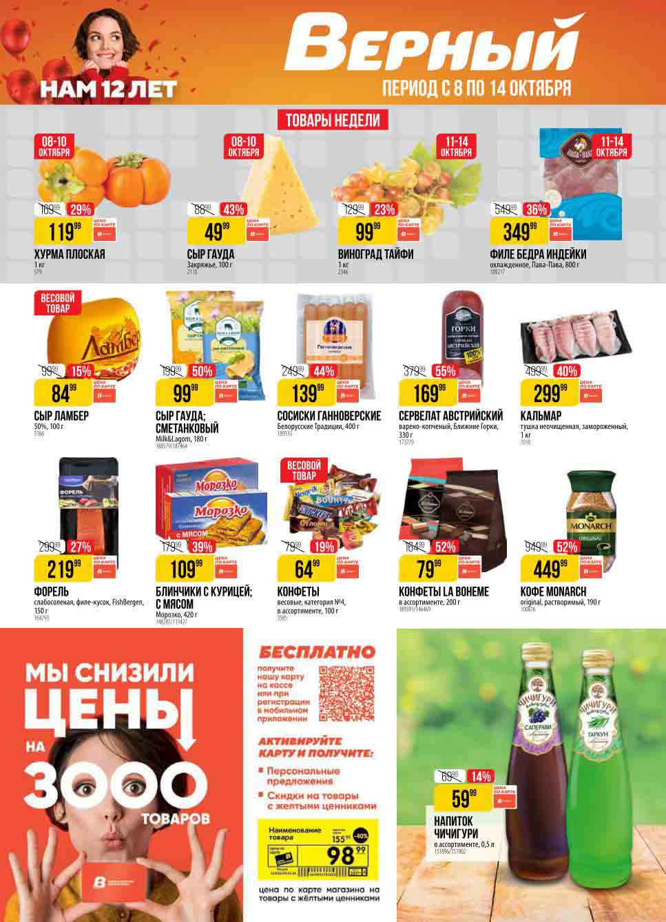 Верный акции с 8 октября — 14 октября 2024. Каталог в супермаркете сегодня