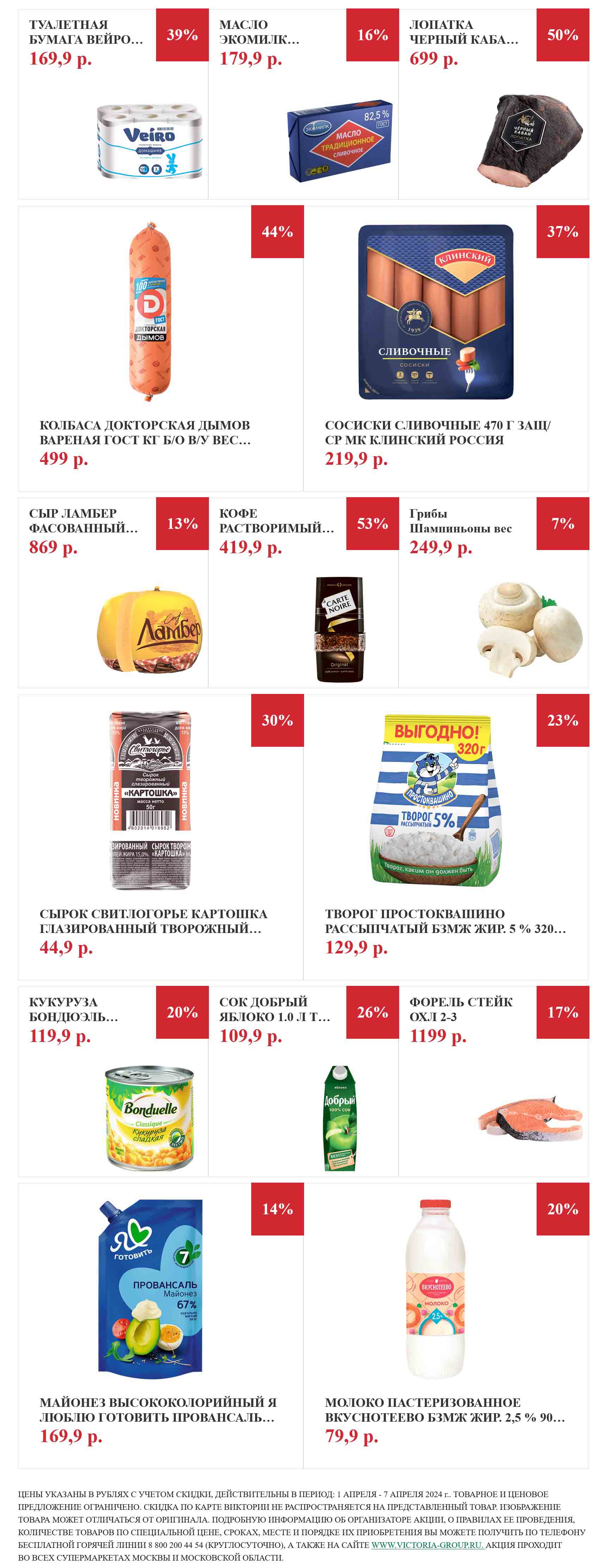 Виктория акции с 1 апреля — 7 апреля 2024. Еженедельные скидки в супермаркетах