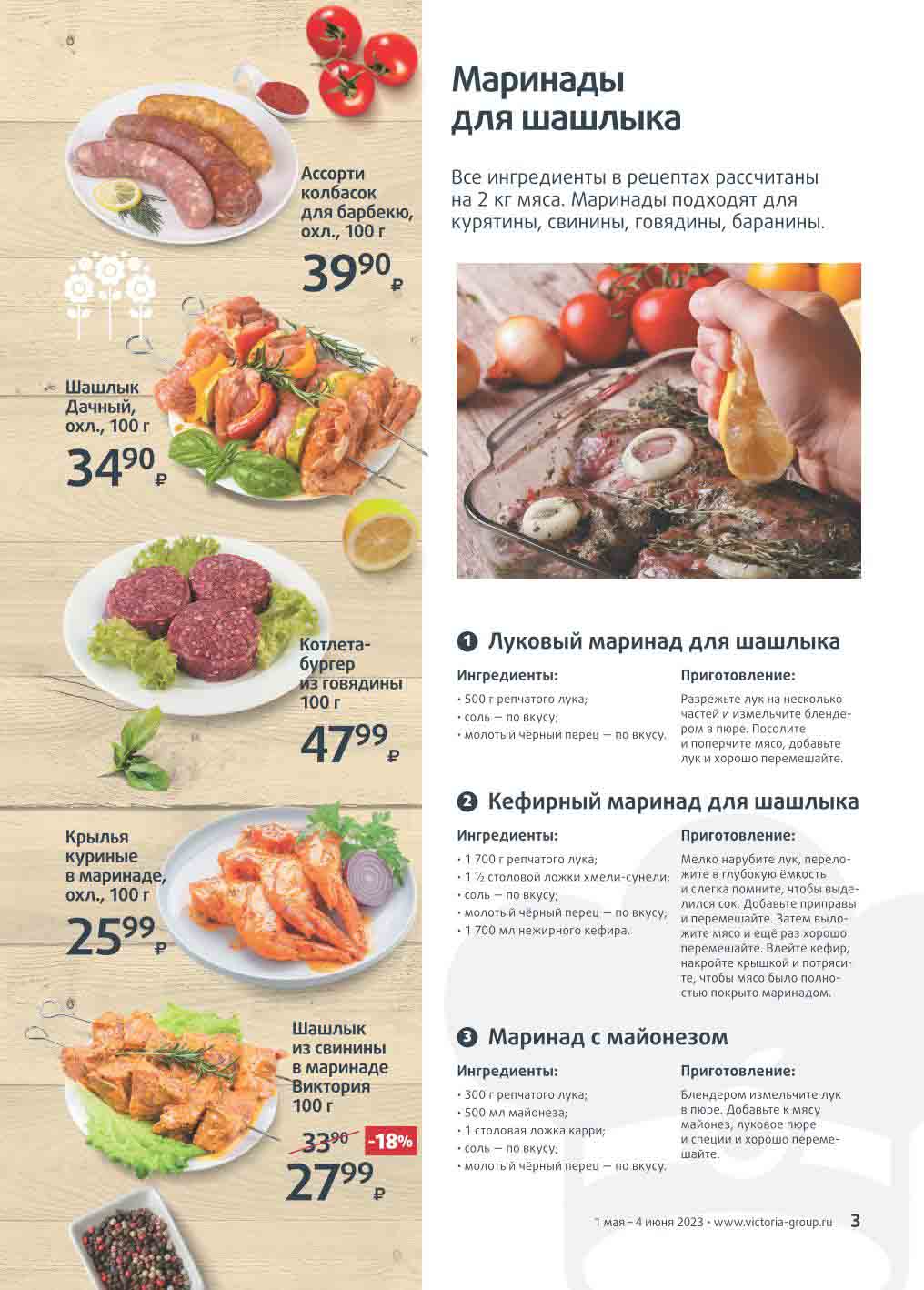 На сегодня 10.11.2025 магазины Виктория в городах: Москва, Химки, Люберцы, Железнодорожный, Красногорск, Долгопрудный, Лыткарино, Реутов и многих других населенных пунктах Московского региона ЗАКРЫТЫ. Действующих каталогов акций "Виктория" в этих городах нет. Компания X5 Group выкупила сеть и весной 2024 года закрылась последняя «Виктория» в Москве.