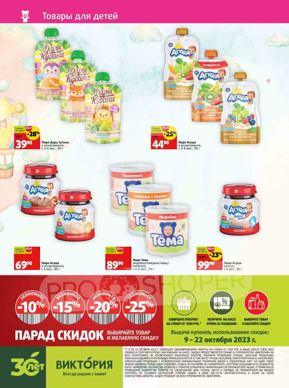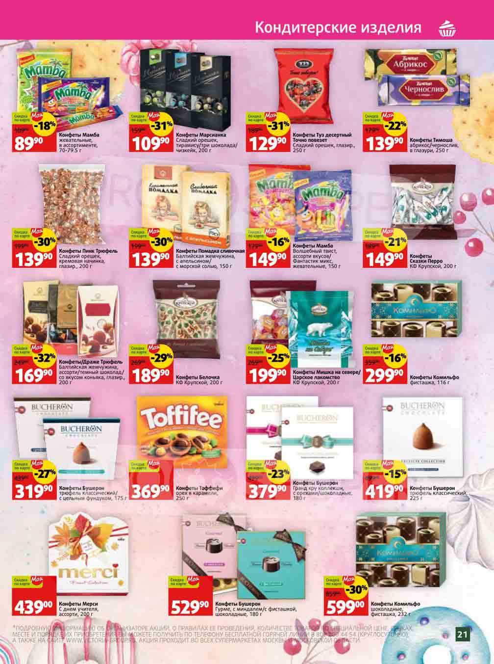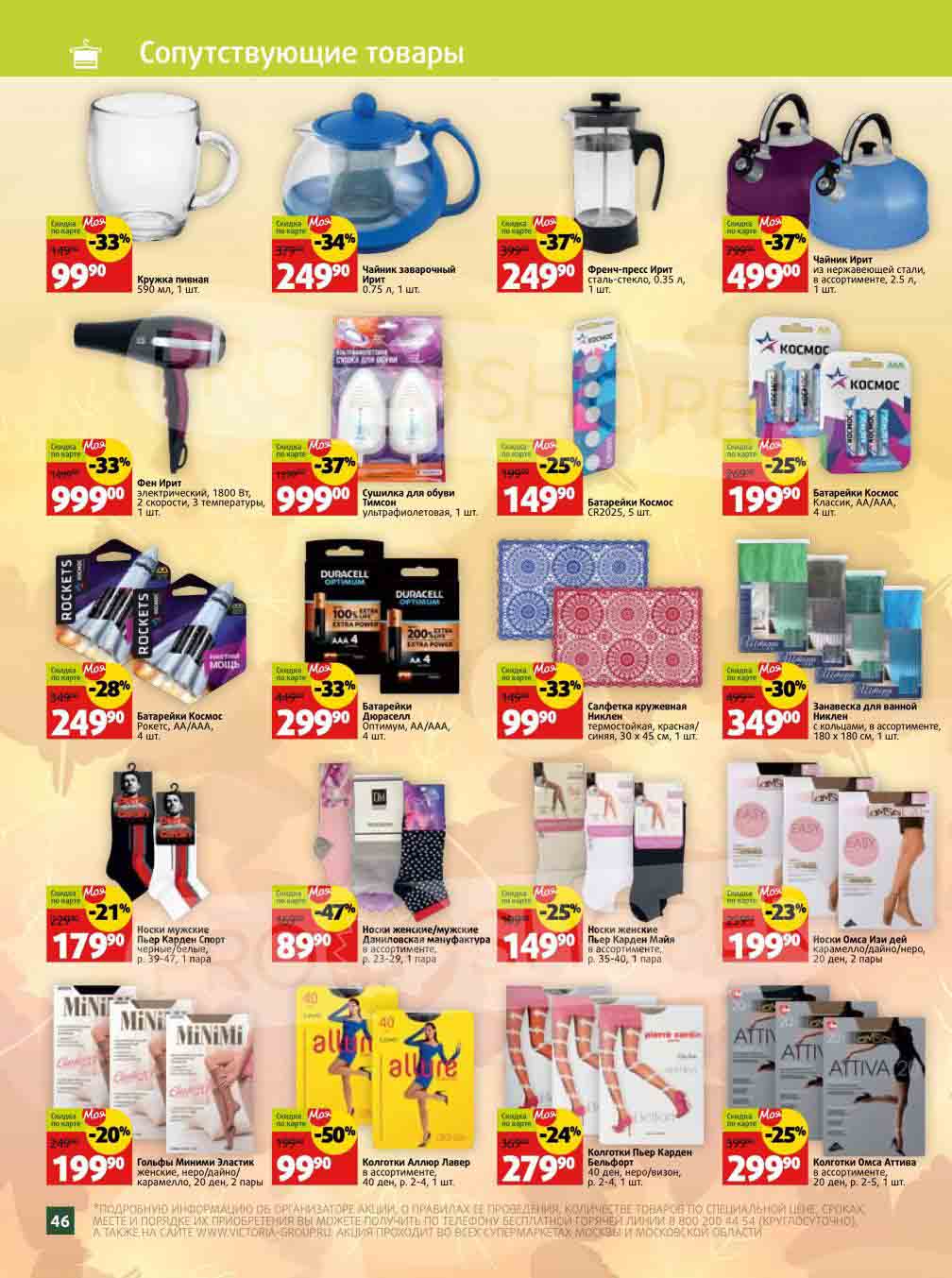 Подробную информацию об правилах, наличии товаров, адресах и скидках узнавайте в магазинахили по тел.: 8-800-200-44-54и на сайте: victoria-group.ru