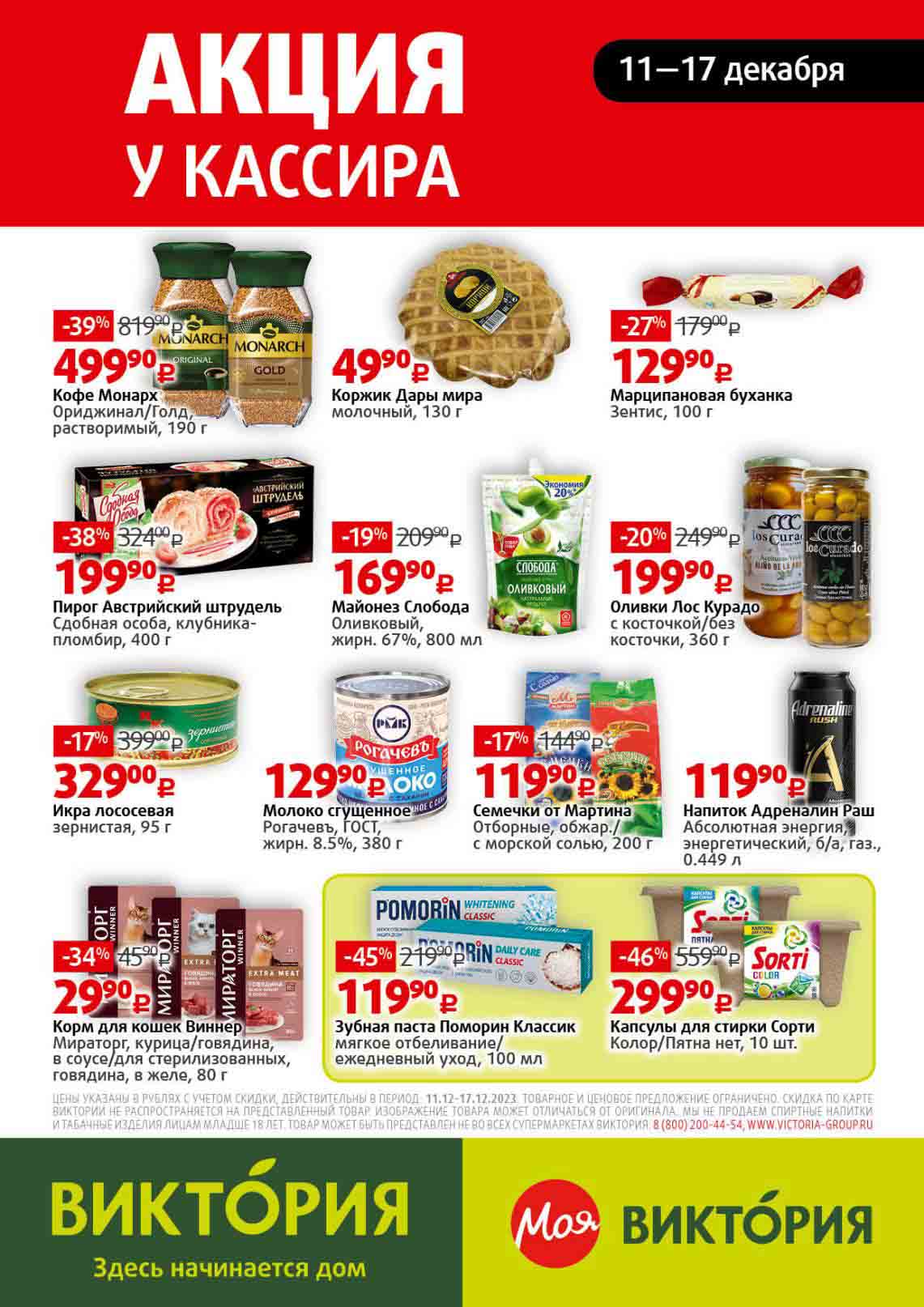 Виктория акции с 11 декабря — 17 декабря 2023. Еженедельные скидки в супермаркетах