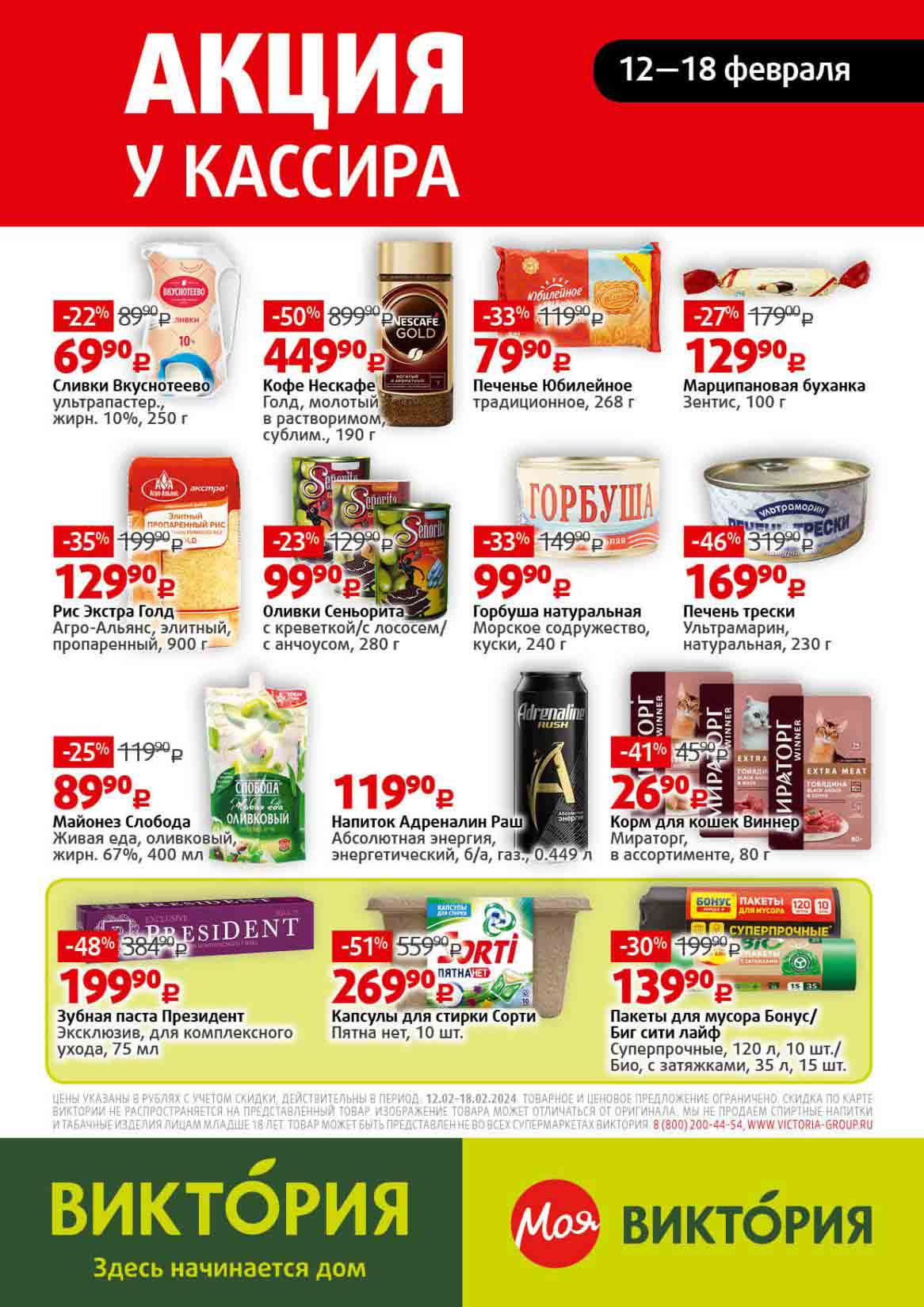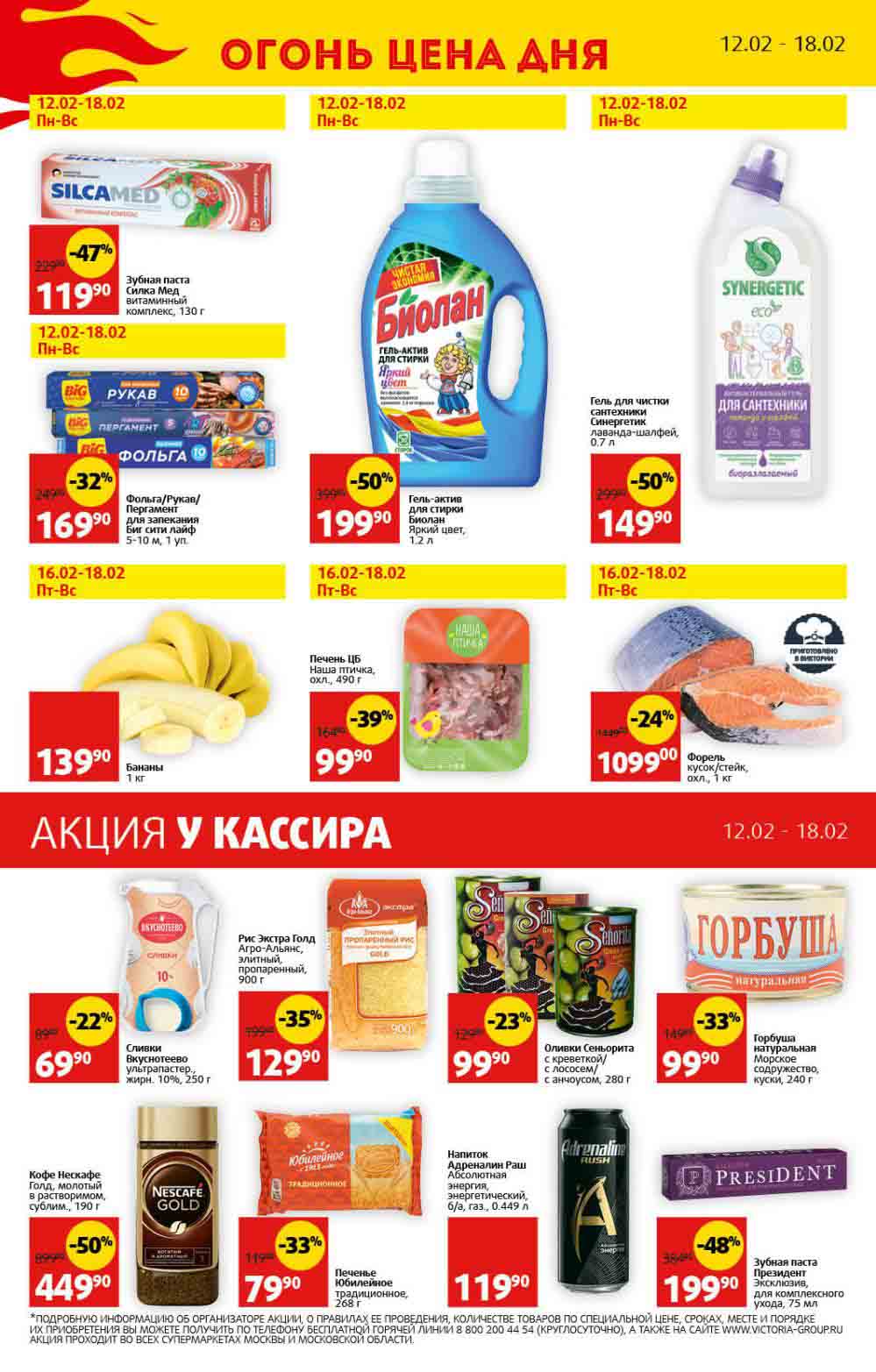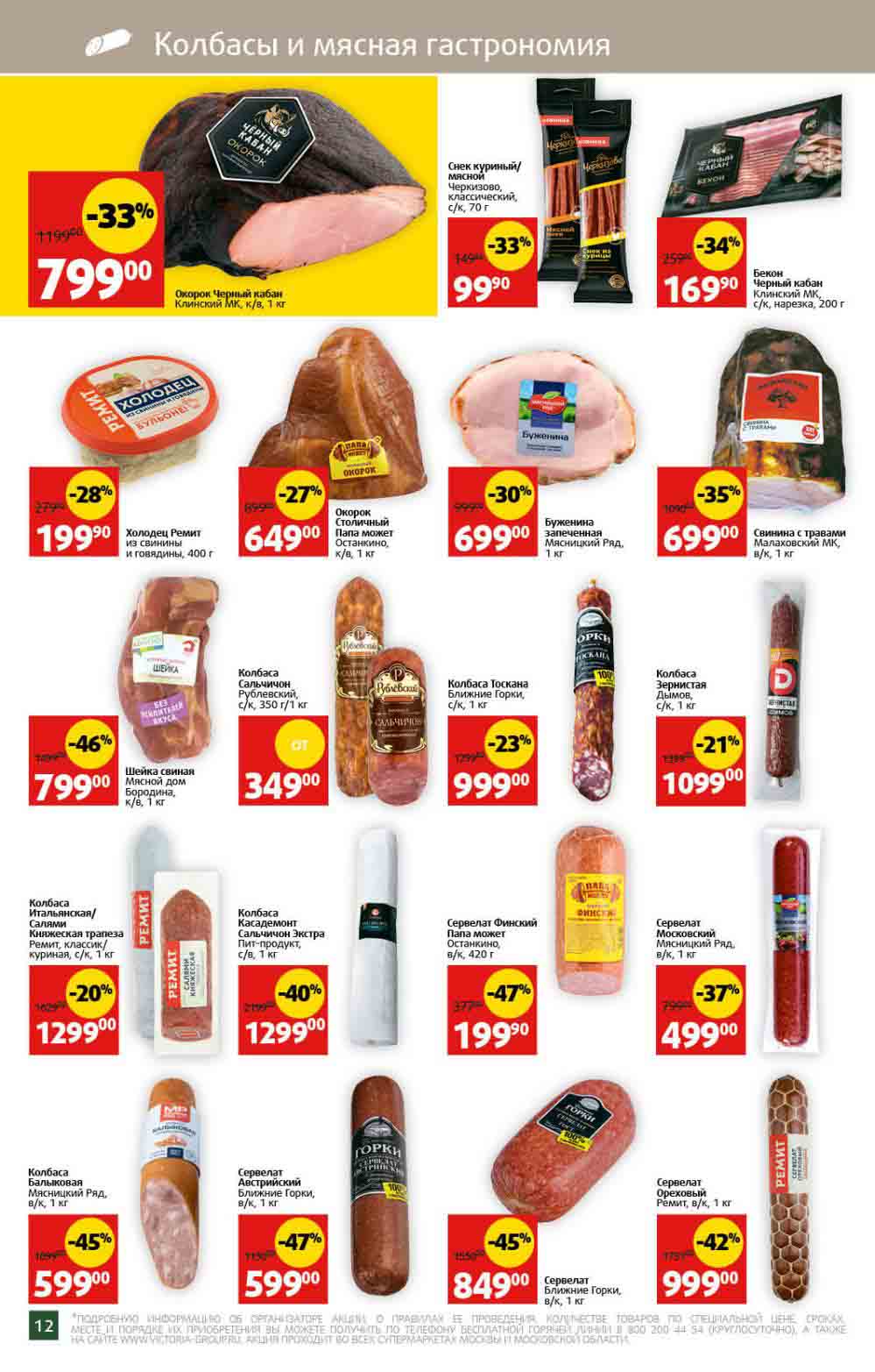Буклет включает в себя различные продукты со скидкой до 60%, например такие, как, колбасы, сыр, клубника, свинина, пельмени, подсолнечное масло, консервированная рыба и туалетная бумага.