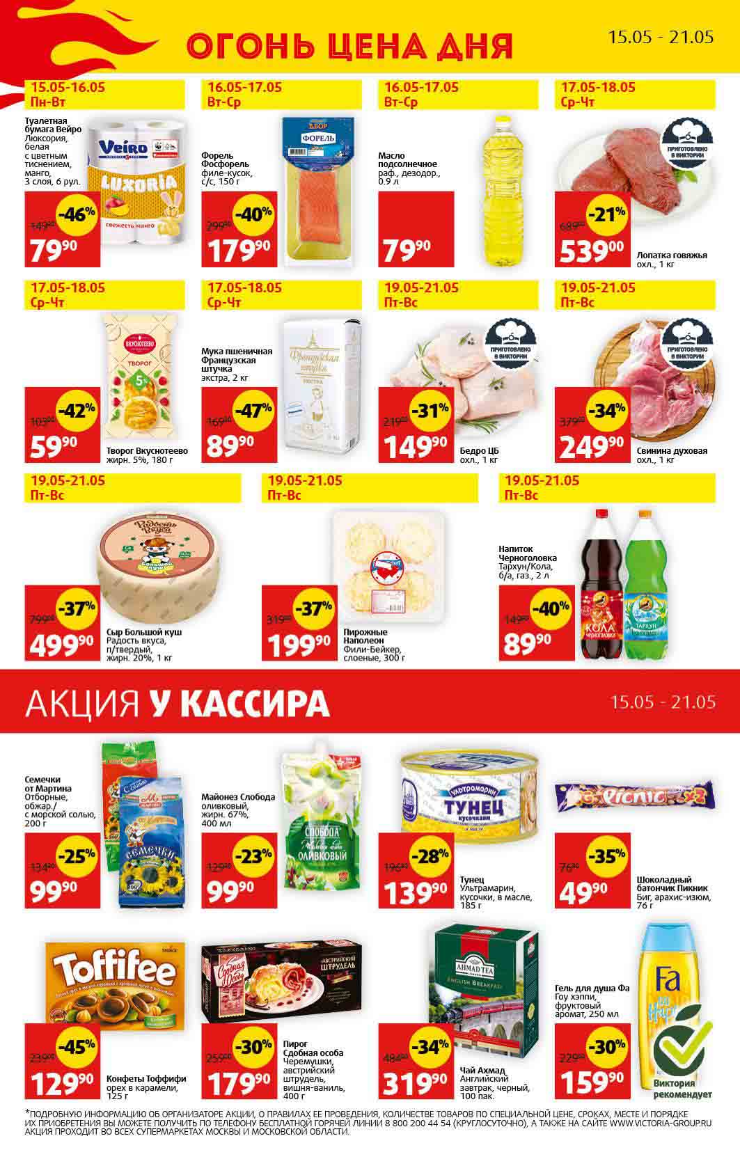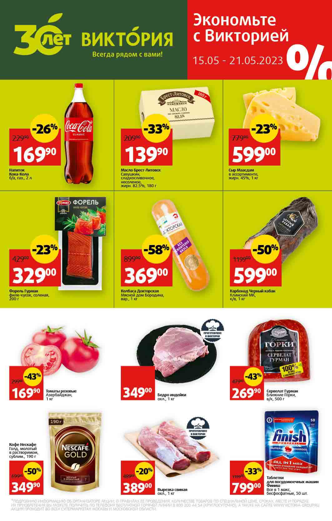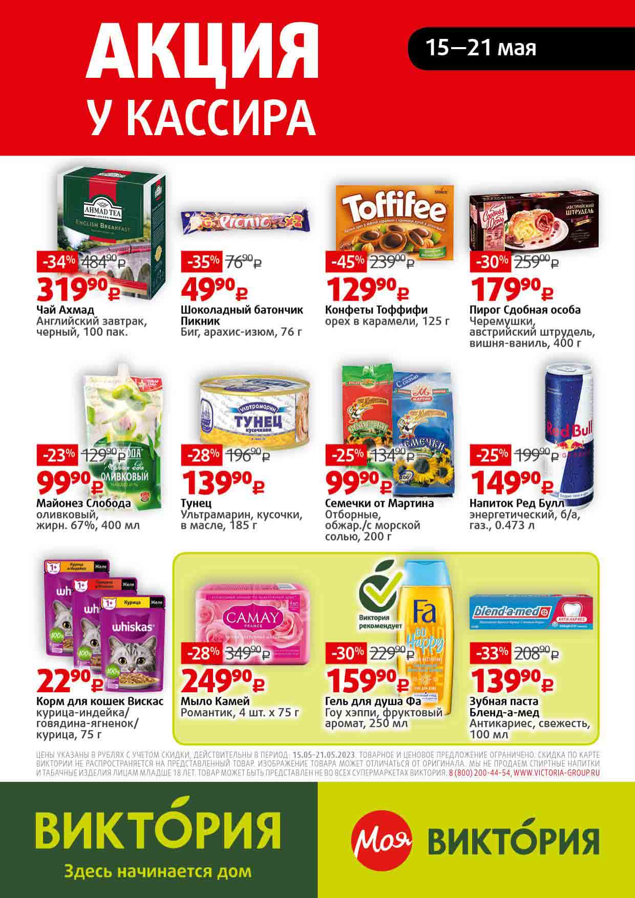 Виктория акции с 15 мая — 21 мая 2023. Еженедельные скидки в супермаркетах