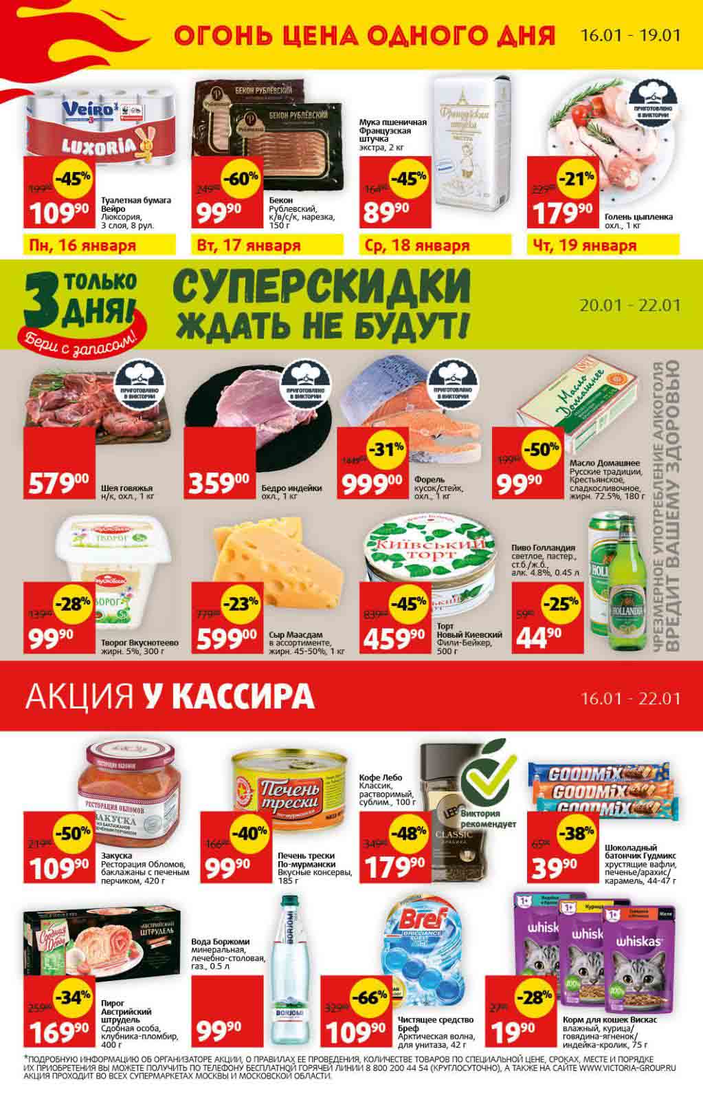 Виктория акции с 16 января — 22 января 2023. Еженедельные скидки в супермаркетах