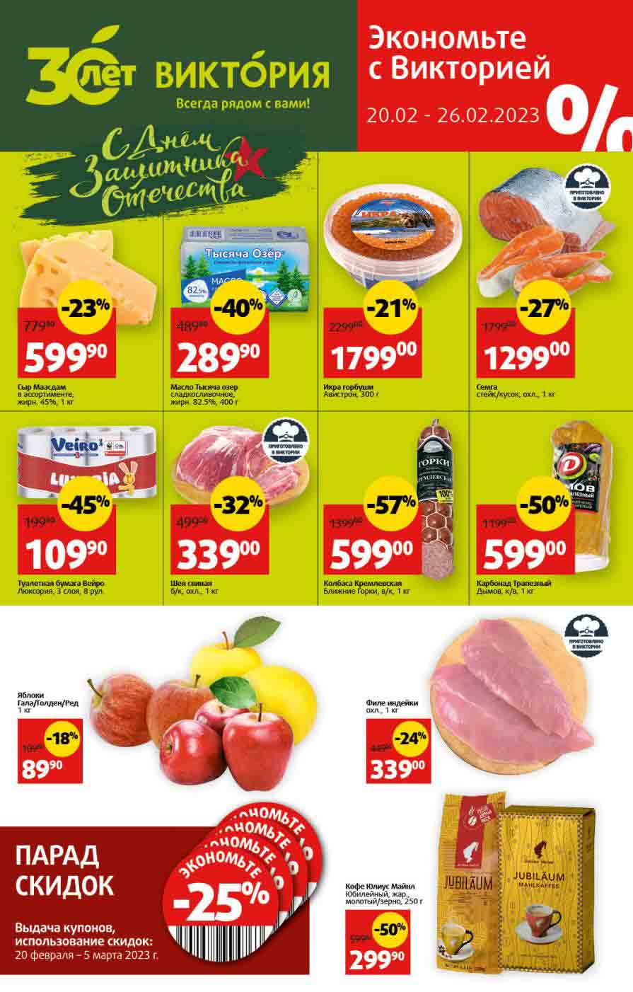Виктория акции с 20 февраля — 26 февраля 2023. Еженедельные скидки в супермаркетах