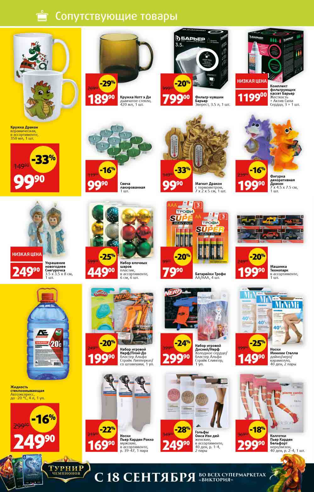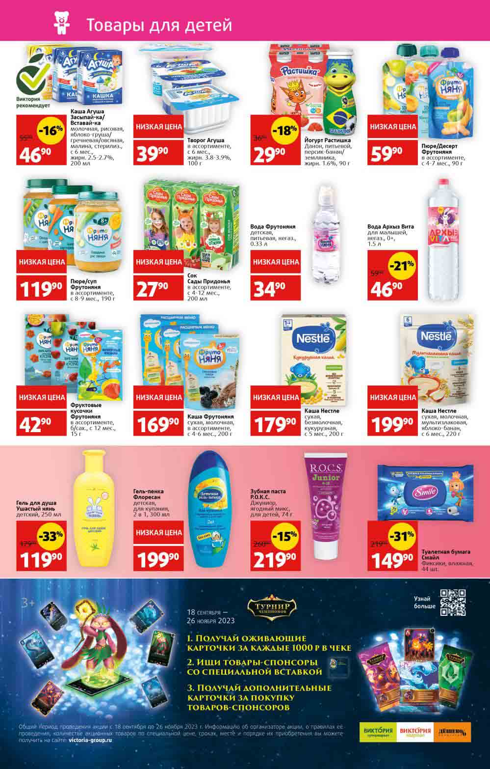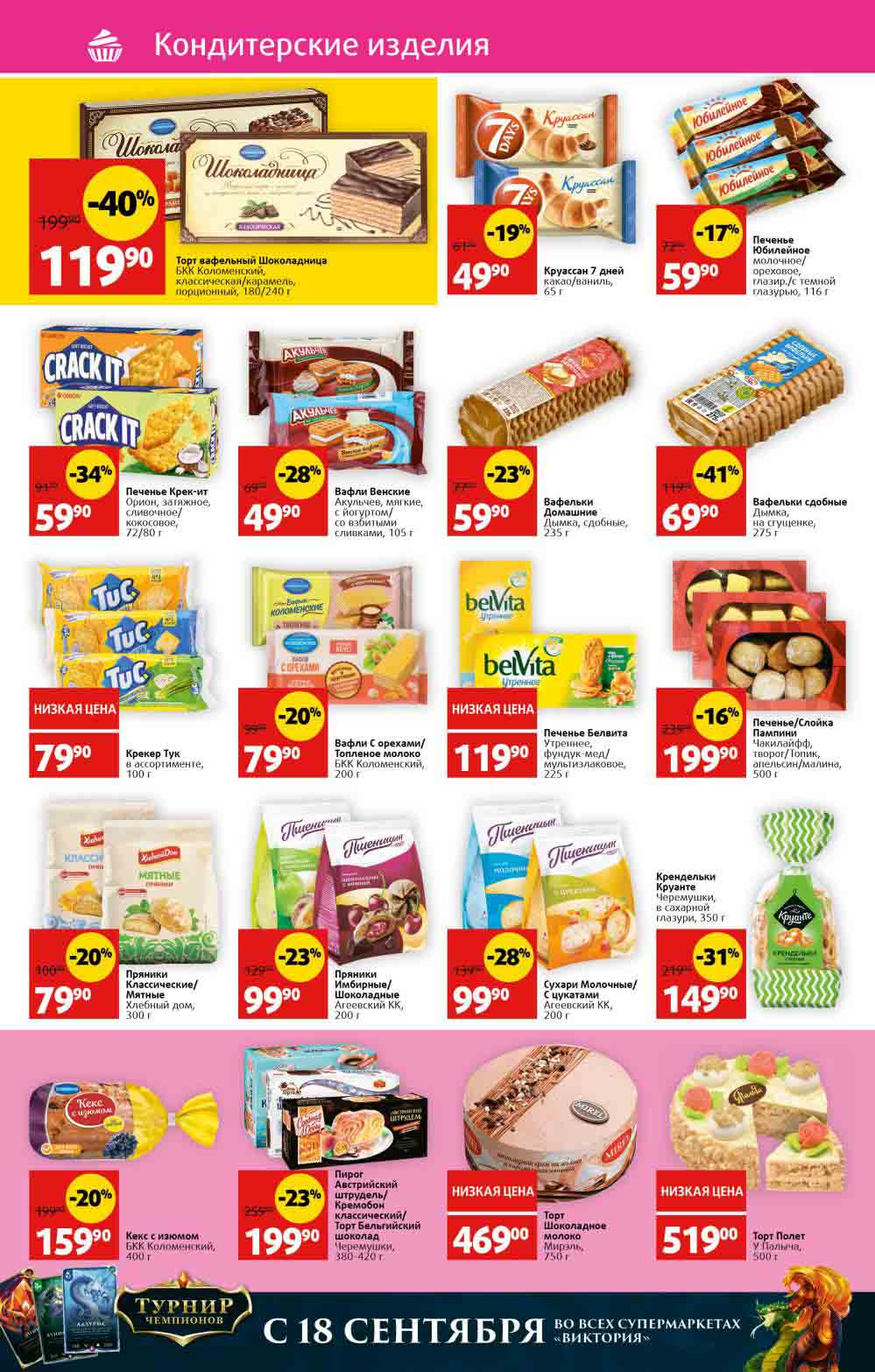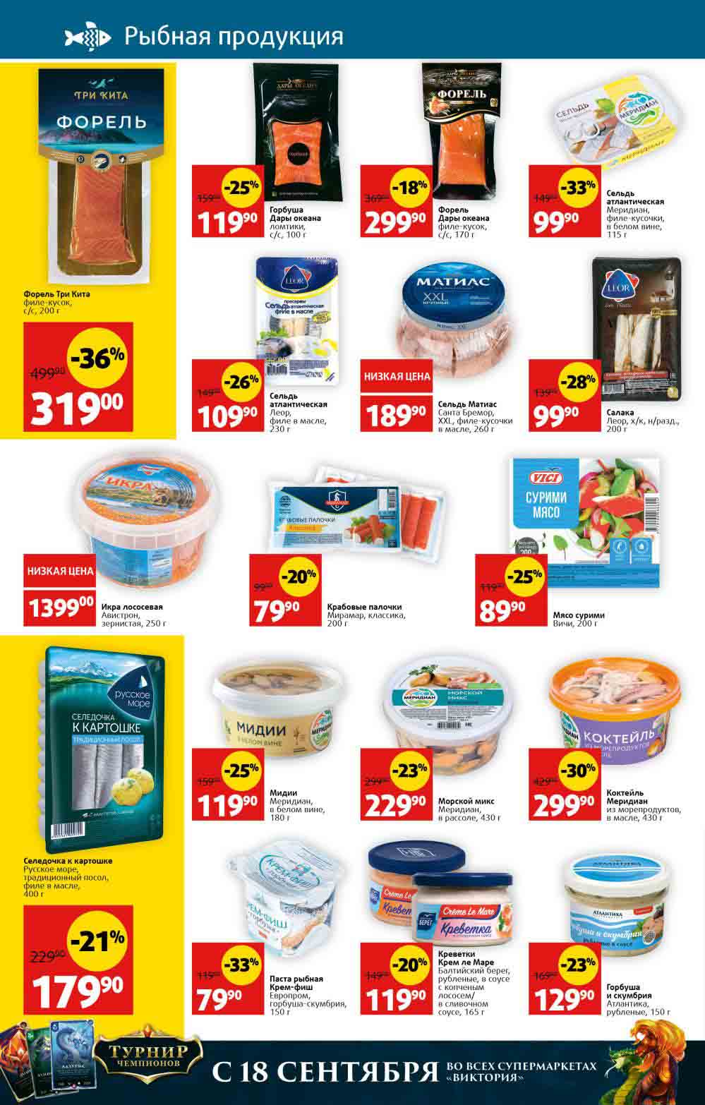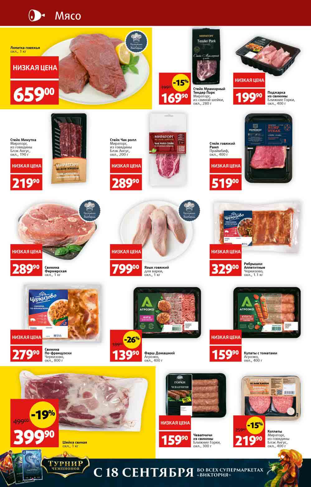 На сегодня 11.11.2025 магазины Виктория в городах: Москва, Химки, Люберцы, Железнодорожный, Красногорск, Долгопрудный, Лыткарино, Реутов и многих других населенных пунктах Московского региона ЗАКРЫТЫ. Действующих каталогов акций "Виктория" в этих городах нет. Компания X5 Group выкупила сеть и весной 2024 года закрылась последняя «Виктория» в Москве.