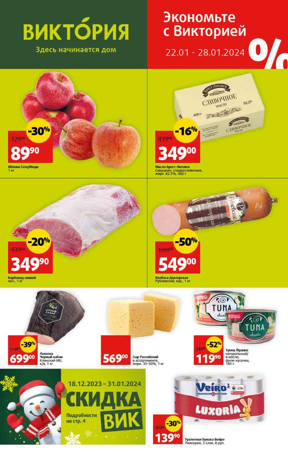 Виктория акции с 22 января — 28 января 2024. Еженедельные скидки в супермаркетах