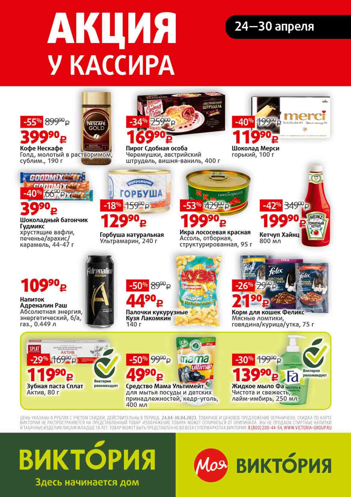 Виктория акции с 24 апреля — 30 апреля 2023. Еженедельные скидки в супермаркетах
