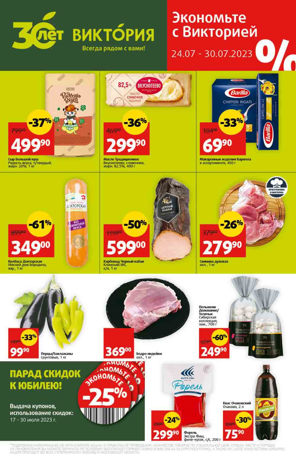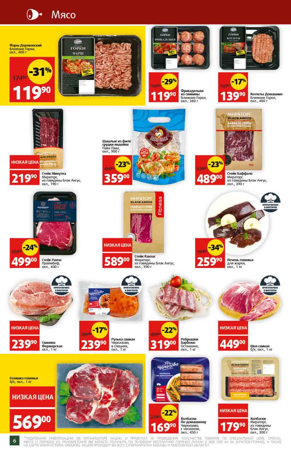 На сегодня 30.10.2025 магазины Виктория в городах: Москва, Химки, Люберцы, Железнодорожный, Красногорск, Долгопрудный, Лыткарино, Реутов и многих других населенных пунктах Московского региона ЗАКРЫТЫ. Действующих каталогов акций "Виктория" в этих городах нет. Компания X5 Group выкупила сеть и весной 2024 года закрылась последняя «Виктория» в Москве.