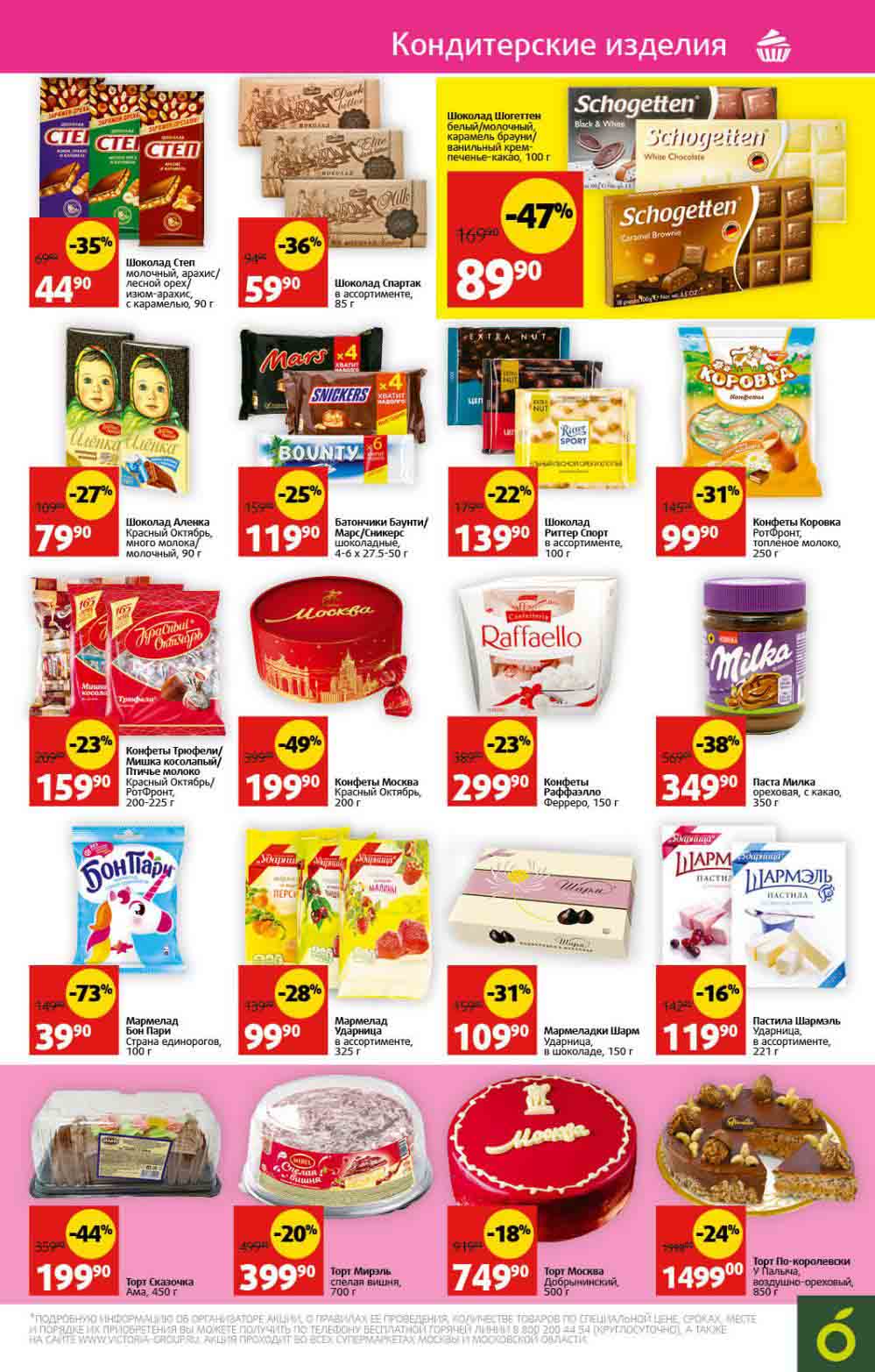 Подробную информацию об правилах, наличии товаров, адресах и скидках узнавайте в магазинахили по тел.: 8-800-200-44-54и на сайте: victoria-group.ru