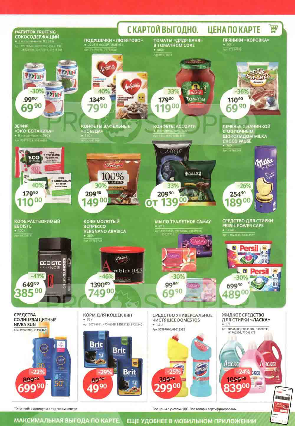 Не пропустите последние специальные предложения и сэкономьте на покупках. В каталоге Зельгрос представлены: товары из продуктовой линии, товары для животных, косметические и парфюмерные товары, бытовая техника, товары для дома, товары для детей и все по невероятно доступных ценам. Цены по акции Зельгрос действуют в Бирюлево, Котельники, Внуково, Алтуфьево, Одинцово, Зеленоград и других населенных пунктах Московского региона.