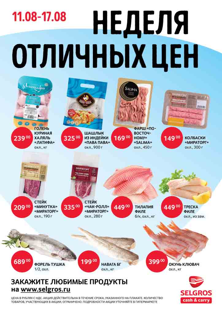 Подробную информацию об правилах, наличии товаров, адресах и скидках узнавайте в магазинахили по тел.: и на сайте: selgros.ru